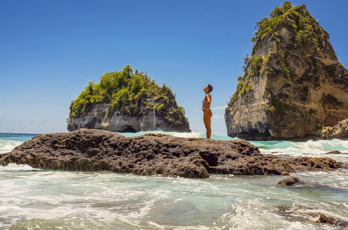 Si bien Nusa Penida no sobresale por su tamaño, cuenta con una interesante cantidad de playas. Kelingking Beach es el ícono de la isla: su acantilado con forma de ballena aparece en incontables postales.