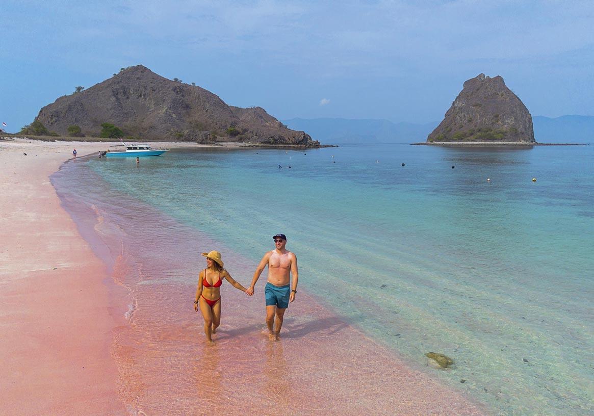 Pink Beach vista desde el barco donde se realizan los tours por las islas Komodo