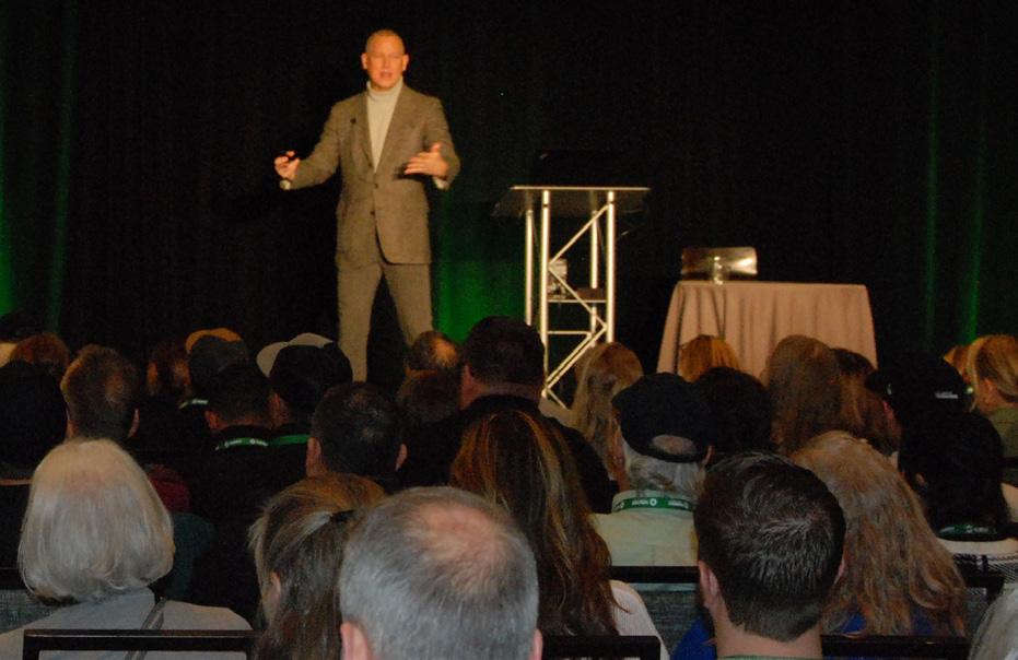 However, nothing is more iLandscape than our daily raffle drawings. When iLandscape launched we knew we needed more than fish bowls filled with business cards. We wanted the raffles to be good enough to keep thousands of people until the end of the day. The raffles are just an example of the pure chaos and corniness that is iLandscape. People stand shoulderto-shoulder in the hopes their name will be called. The daily presenters, plucked from the bravest members of our committee, have a stack of prizes, two mics, and no script. For the next 30 minutes they need to identify 20 winners and entertain 1500 losers. If you know you know; it is part carnival, part revival tent, part stand-up comedy, and part ship mutiny. It is corny in all the right ways.