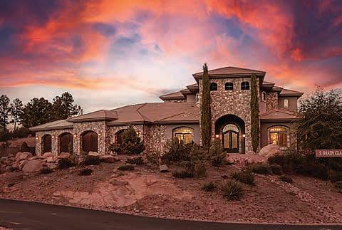 2800 E Rim Club Drive, The Rim Club: 4BRs, 6 baths, 6425± sf, 3-car garage capacity, 1.45 acres bordering golf course. Full golf membership & cart included! Only the finest fixtures & finishes. Chef's kitchen, Subzero / Viking appliances, breakfast nook w/ deck access. Greatroom w/ views of Monument Peak & the Granite Dells. Formal dining, spacious master suite & study. $2,495,000 (87603)