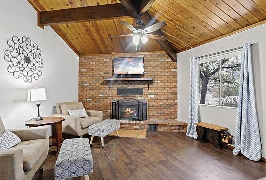 level area to build, power, water & septic in. Slight slope for incredible views, sunsets and easy access. Circular drive, ready for your weekend cabin or full-time home. Low HOA dues of $325 / yr includes water. Mild CC&Rs to protect your investment. Horses OK! $109,900 (242113) 1944 STONE GATE WAY: Great things come in 3's in this beautiful 3BR home w/3-car drive-thru garage. Open floorplan, log beams, soaring ceiling, 2 ensuites, loft / office, theater room with ¾-bath, dormers, bonus room. Chef's kitchen, cherry cabinets, huge granite tile b’fast bar w/ mounted barstools. Parking area for trailers, 36x36 barn w/ electric, tack room, 3 pipe-rail turnouts, boat storage, fenced, asphalt drive, easy access from paved road. $784,500 2790 PINE RIM ROAD: Furnished cabin, vaulted ceilings, hardwood floors, Silestone counters, old-fashioned stove w/ convection. 2-zone central heat & A/C, floor-to-ceiling F/P, pocket doors. Master access to wrap-around Trex decking. Full-time or summer cabin! Underground propane tank, shared well, close to county park. $998,000 (241183) SALE PENDING! MountainMemories LastForever! SALE PENDING! BRING BACKUPS!