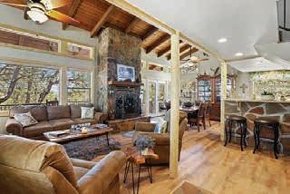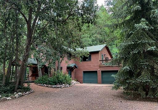 This is a 3BR, 2 bath, 1383 sf cabin with T&G ceilings & a stone F/P. It's in the trees on a quiet, paved, dead-end street, and it borders the Nat’l Forest with views of the mountains. Totally renovated w/ new roof, siding, decking, A/C & forced air heat! New laminate & carpet, dual-pane windows, French doors, and built-in closets & drawers. Updated granite kitchen w/ all new GE appliances. Granite bathrooms w/ spacious, tiled, walk-in showers. $622,000 (88371)