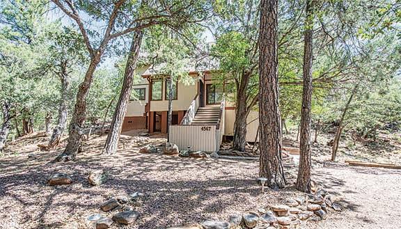 4843 N Mountain Sunrise: 2BRs, 2 baths, 1212 sf, stone F/P, lots of windows, granite kitchen w/ island and ample cabinetry, expansive decking, and it's all surrounded by towering pine trees in The Portals! This is the perfect place for full-time living or your secluded weekend getaway. $412,000 (87818)