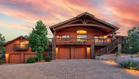 Amazing views from all three levels of this stately 4BR, 4 bath, 4312 sf home with an attached 2-car garage, all on a 0.58-acre parcel in a gated golf community. Beautiful flagstone entry and foyer, stunning greatroom w/ stone F/P, hardwood flooring and Surround Sound. Slate floors in kitchen & baths, 1100 sf of wrap-around decking offering magnificent mountain views! Art studio / office, reading loft, master BR with F/P and a bath w/ two shower heads. Zoned heating & cooling throughout. Truly one of Chaparral Pines' premier luxury mountain homes. $1,449,000 (89777) Call Mike Woolery at 928-978-2029