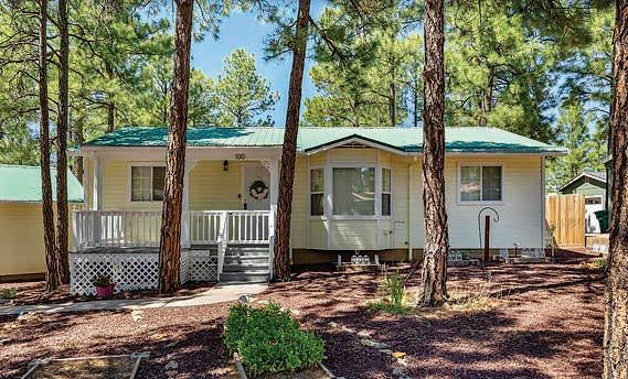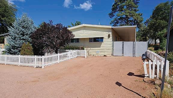 701 N Matterhorn: Move-in ready 1995 mnf’d home in Payson. Beautiful 2BR, 1½ bath w/ office or den, ±828 sf. Kitchen has pantry, gas range, refrigerator, d/w & m/w. Central heat & A/C, washer & dryer convey. Spacious back yard is fenced and has lush vegetation and tall pines. Covered front deck, plus a workshop and a carport. Corner lot is 0.15-acre. Metal roof! $299,000 $250,000 (91085)