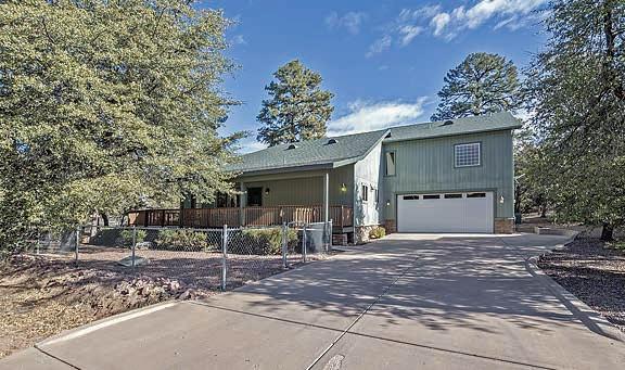 5124 Strawberry Lane, Happy Jack: 2BRs, 2 baths, loft, 1539 sf, detached 2-car garage, 1.05 fenced acres in Clear Creek Pines. Pellet stove, T&G ceilings, dual pane windows, covered front deck. Separate guest quarters. No HOA. $564,000 (92960)