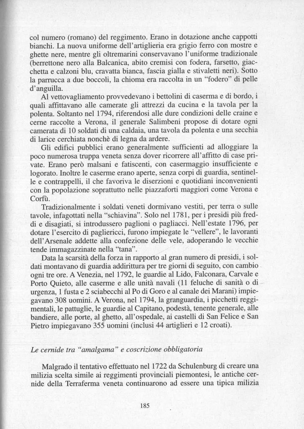 Più in generale appare raggiunto il fondamentale obbiettivo di raccogliere a beneficio degli studiosi non solo italiani un lungo rosario di informazioni fattuali finora distribuite in fonti e in una letteratura spesso di carattere fortemente localistico e anche per tale motivo non sempre di facile accesso - il che spiega, tra l'altro, perchè siano state di regola trascurate da quei pochi pionieri che si sono interessati ai temi e ai problemi evocati da questo libro - e di articolarle essenzialmente in base agli schemi dell'organica militare. Va da sé che l'affidabilità dei dati sia maggiore quando gli autori hanno potuto disporre - come è stato possibile in larga misura in relazione allo Stato sabaudo grazie alle ricerche di Brancaccio, di Walter Barberis, di Enzo Ferrone e di Sabina Loriga oppure al granducato di Toscana esemplarmente studiato da Nicola Labanca oppure ancora, sia pure per taluni aspetti per un certo verso più circoscritti, alla Lombardia austriaca di Claudio Donati e al regno di Napoli di Anna Maria Rao - di ricerche puntuali di grandissimo rilievo. Certo, tenendo conto di un assetto globale delle indagini ancora ben lontano dall'essere,