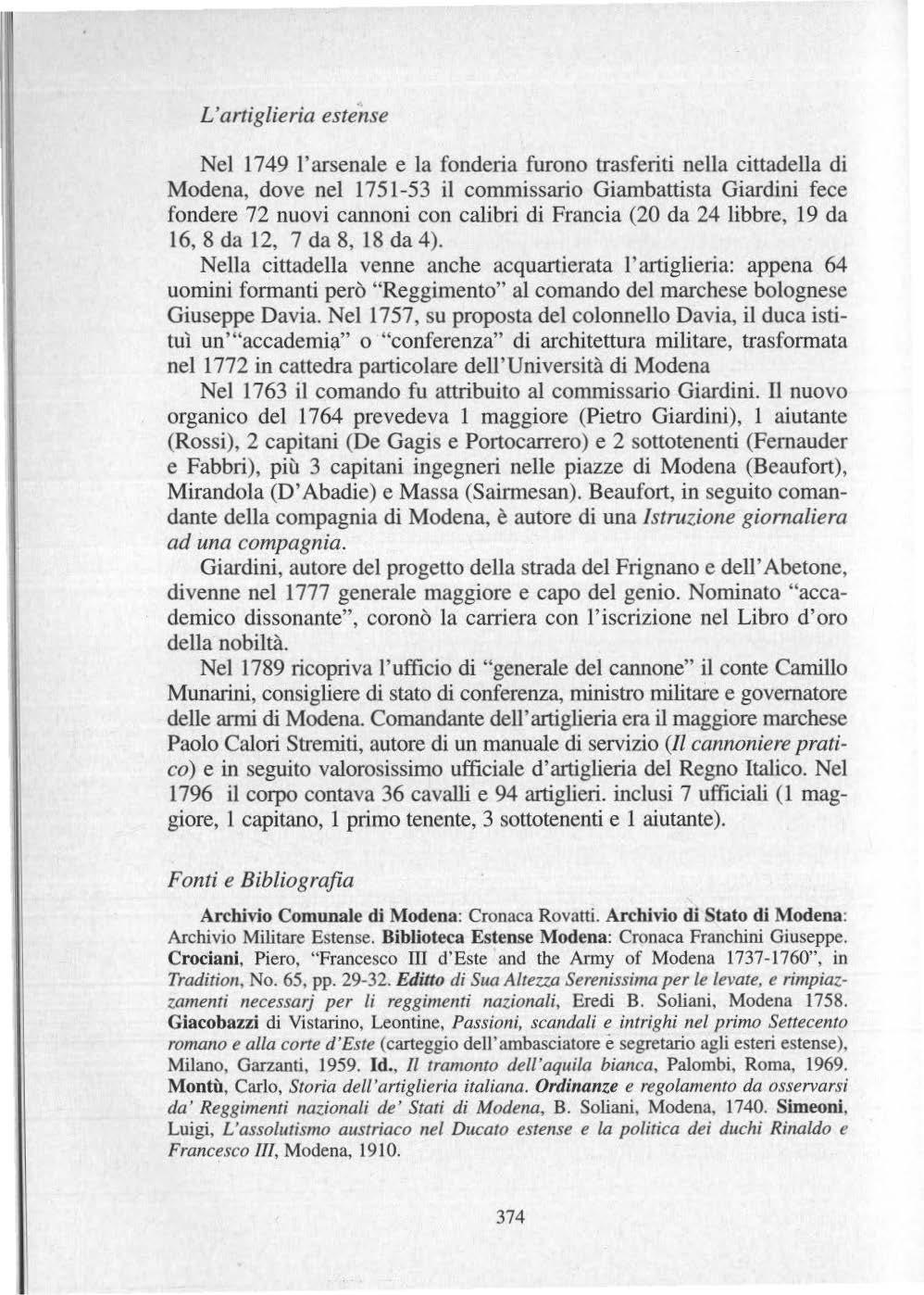 Questo complesso di opere, pur se non tutte di uguale spessore, costituisce ancora un punto di riferimento obbligato degli studi in materia, che, almeno relativamente al periodo "pre-napoleonico", hanno registrato sinora pochi contributi di particolare esaustività ed eccellenza come quelli di M. E. Mallett e J. R. Hale (1984) sulla storia militare veneziana (The Military Organization of a Renaissance State, Venice c. 1400 to 1617) e di Claudio De Consoli (1999) sull'amministrazione militare sabauda (Al soldo del duca, 1560-1630).