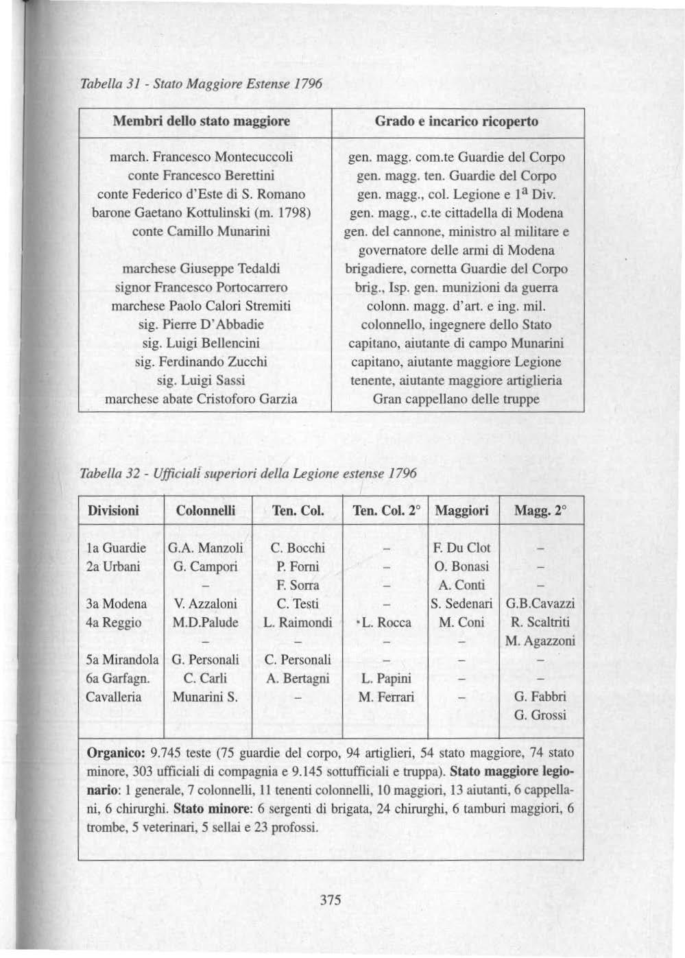 Tabella I - Il poten z iale militare italiano ( 1765)