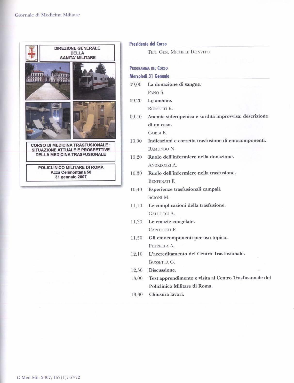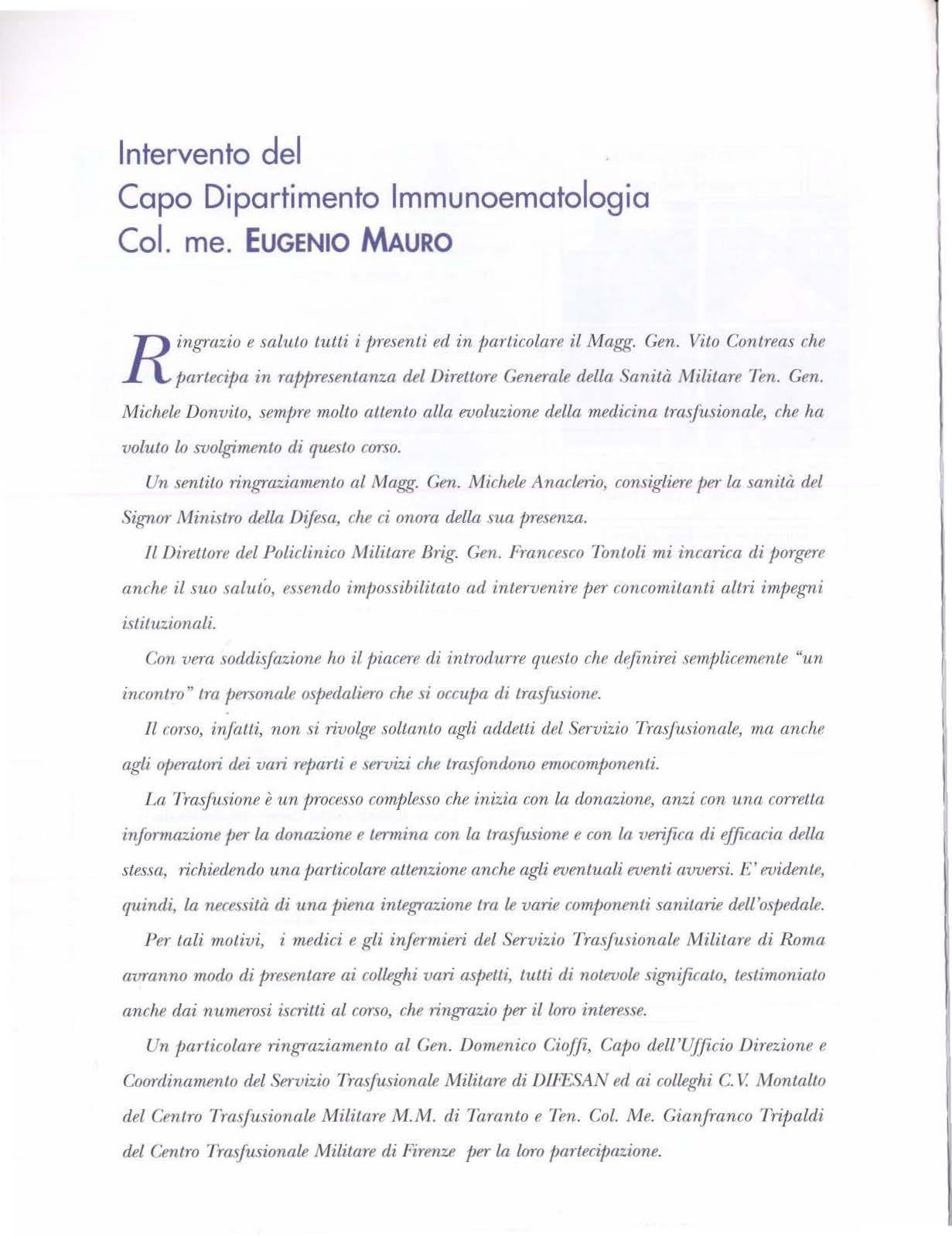 135 Introduzione del Capo Dipartimento Immunoematologia del Policlinico Militare di Roma