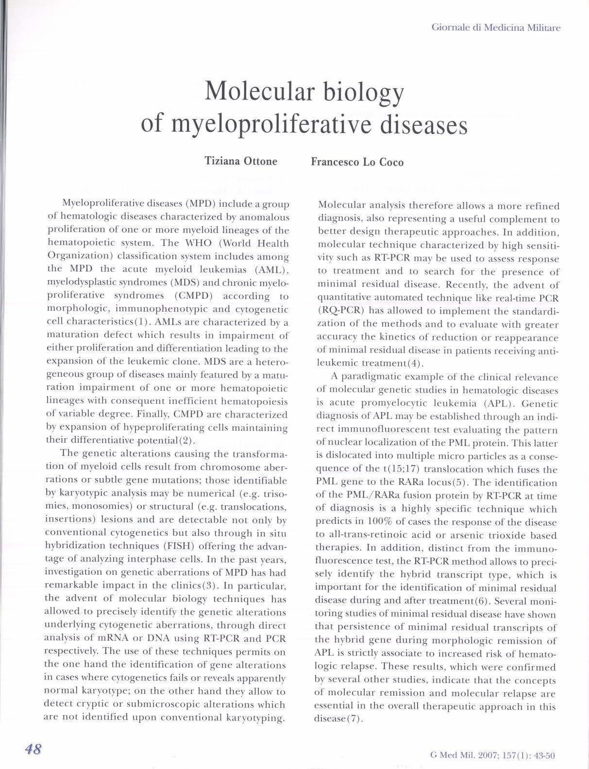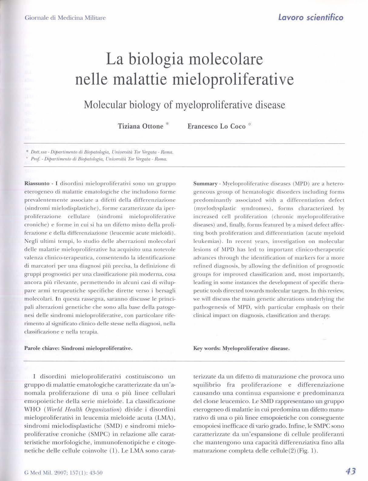43 La biologia molecolare nelle malattie mi eloproliferative. *