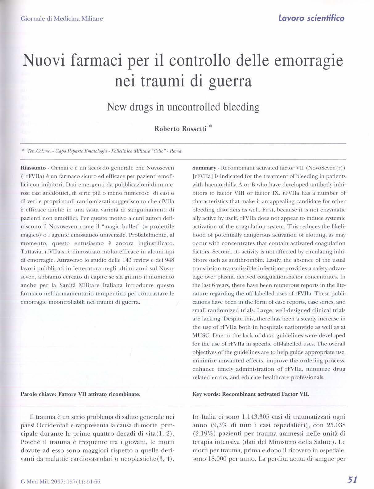 51 Nuovi farmaci per il controllo delle emorragie nei traumi di guerra. *