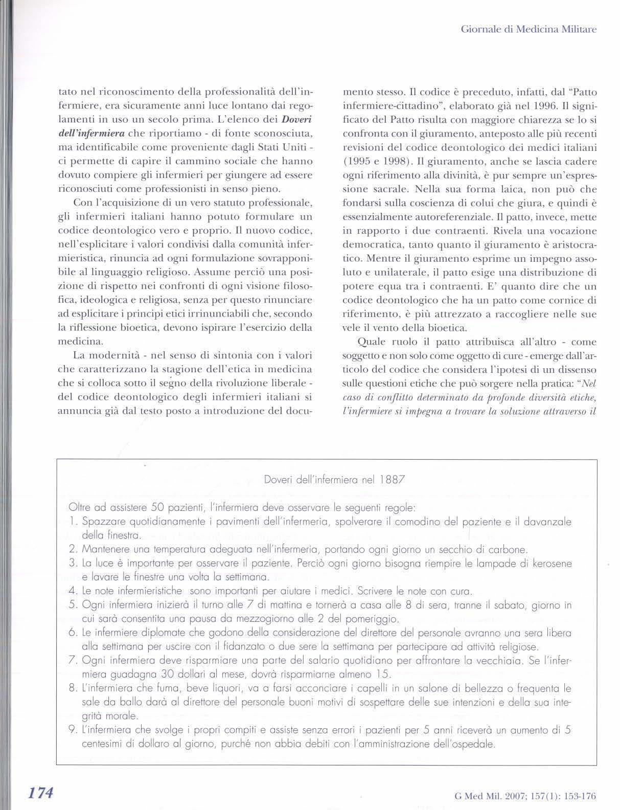 Con l' acquisi zione di un vero statuto professionale, gli infe rmieri italiani hanno potuto formulare un codice deontologico vero e proprio li nuovo codice. nell 'esplicitare i valori condivisi dalla comunità inferm i eristica. rinuncia ad ogni formu l azione sovrapponibile al linguaggio religioso. Assume perciò una posizione di rispetro nei confronti di ogni visione filosofica , ideologica e religiosa, senza per questo rinunciare ad espl i ciwre i principi etici irrinunciabili che, secondo la rinessione bioetica, devono ispirare I' eserciLi o della medicina.