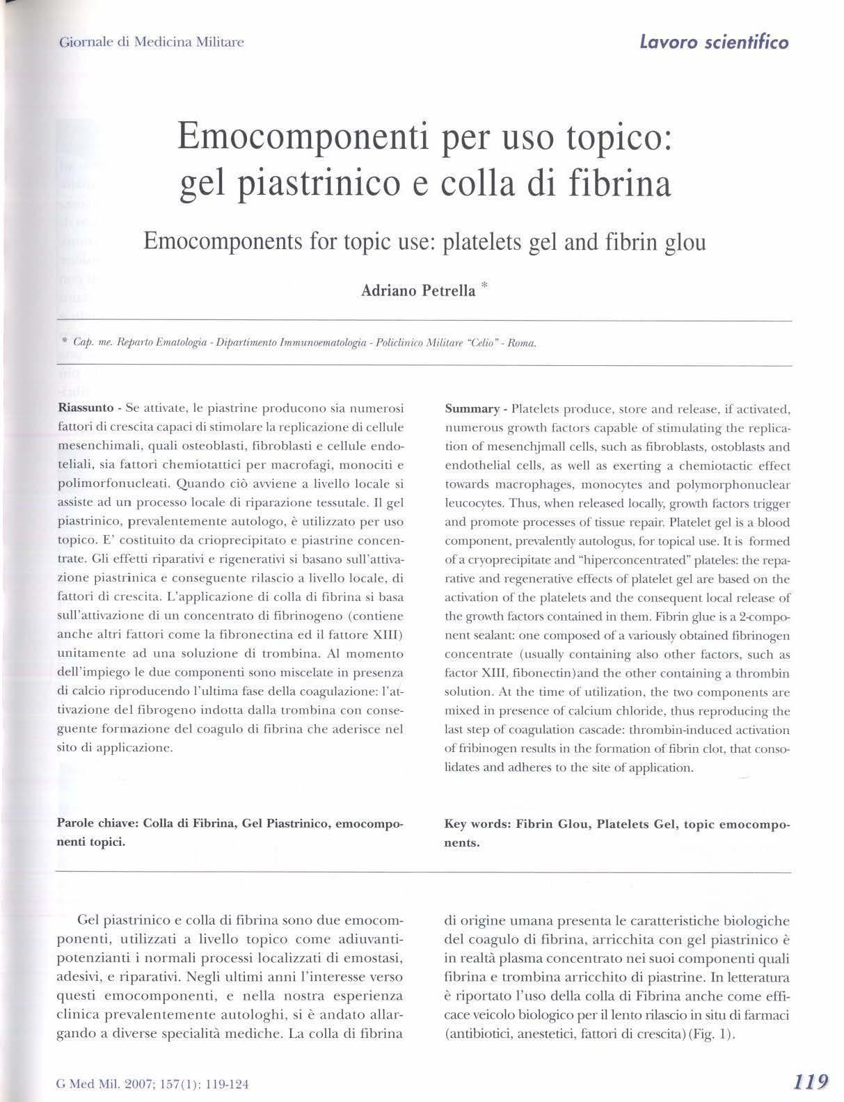 119 Emocomponenti per uso topico: Gel Piastrinico e Colla di Fibrina.
