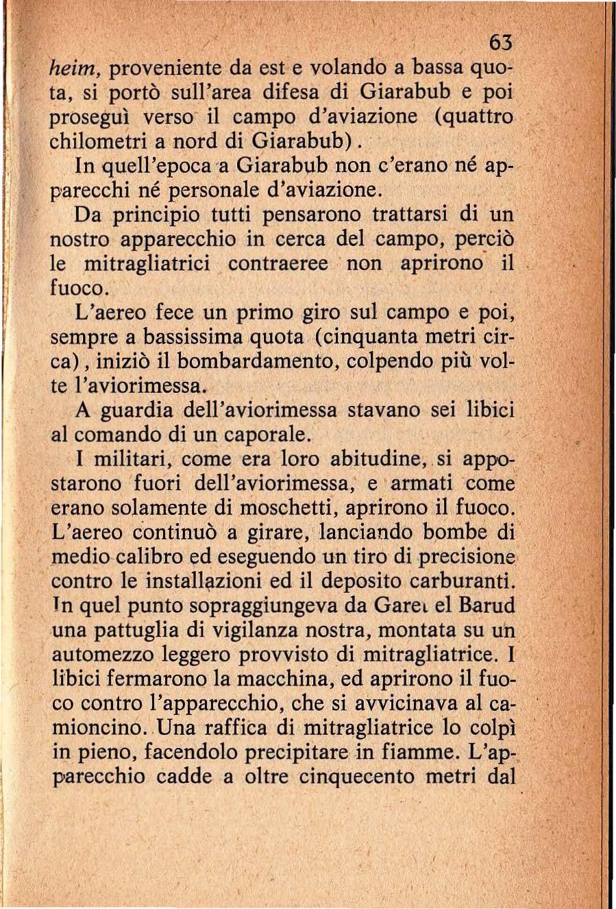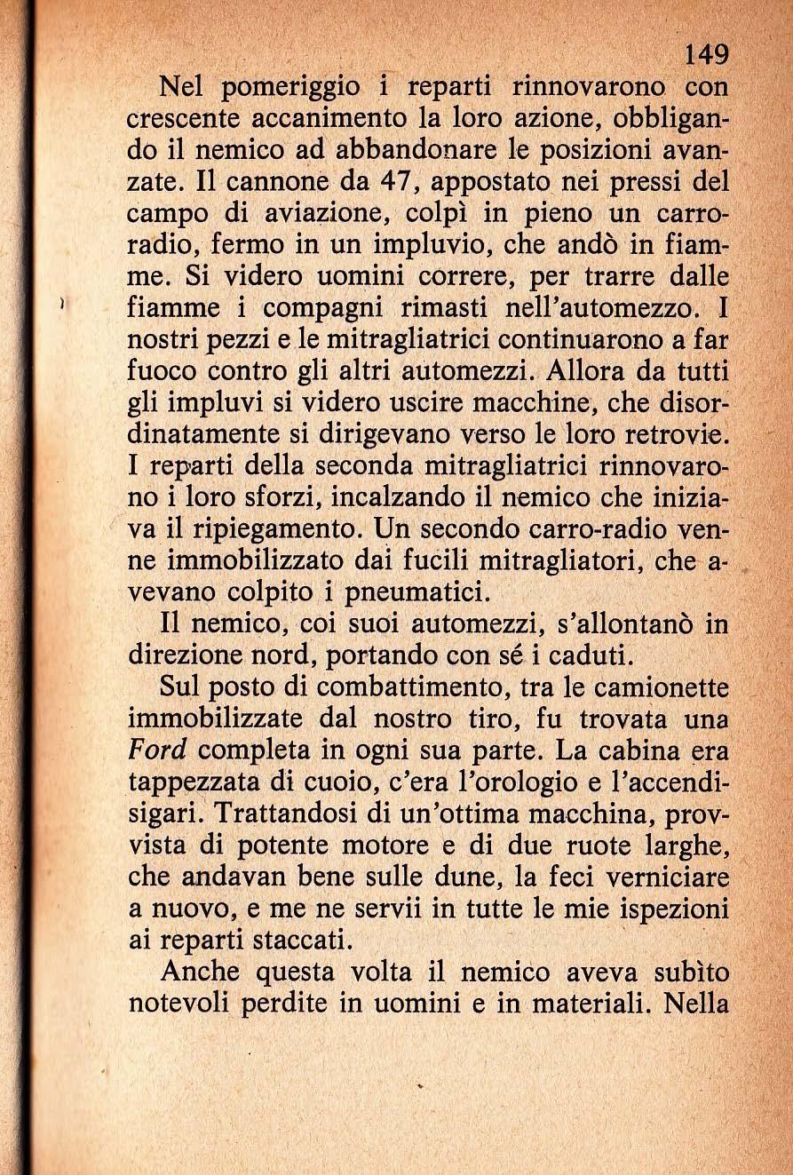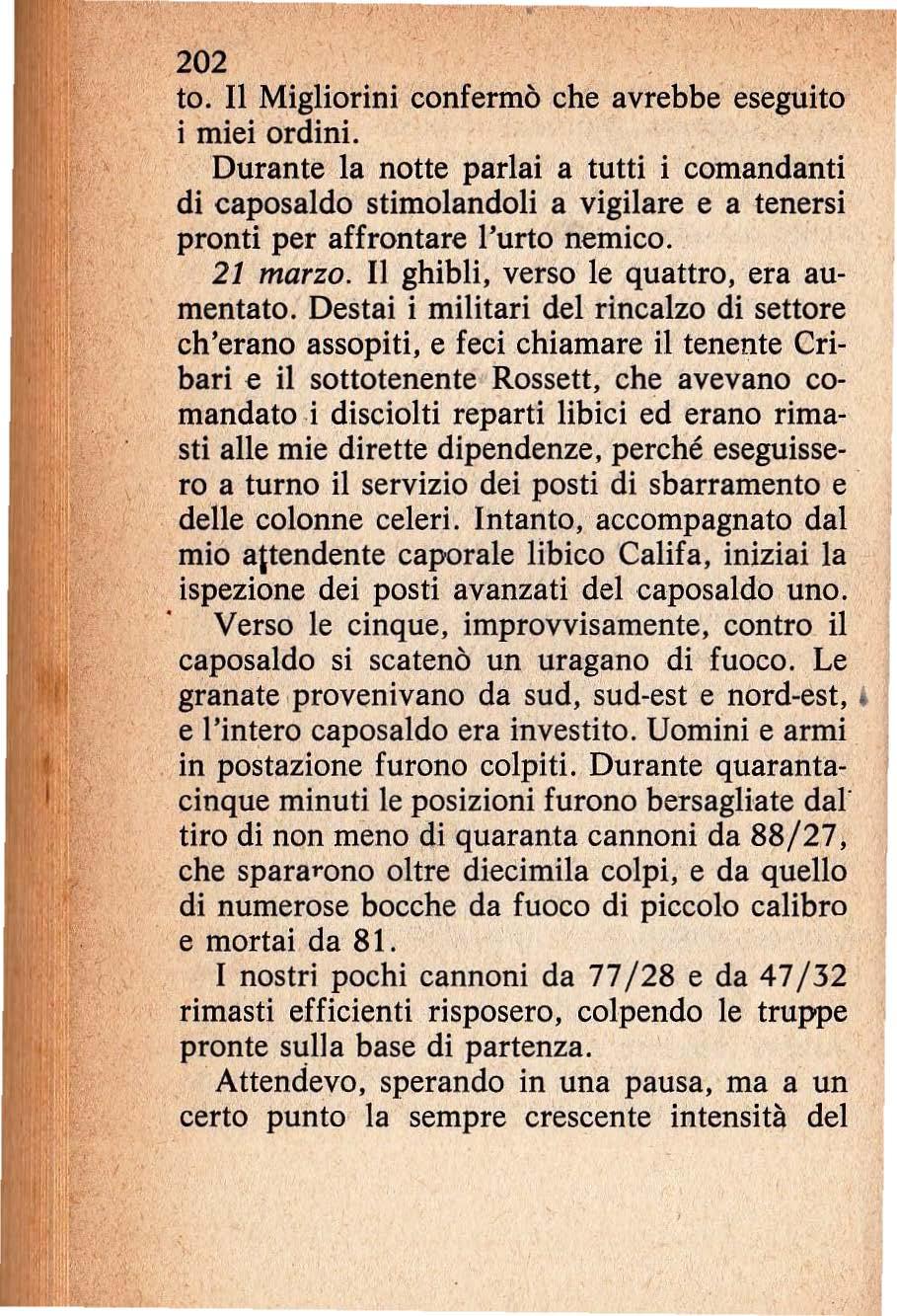 Gli altri ufficiali del mio comando trascinarono più volte al contrassalto i pochi ·nazionali e i libici rimast i illesi, r iuscendo ad arginare , in un primo tempo , l 'ondata nemica.