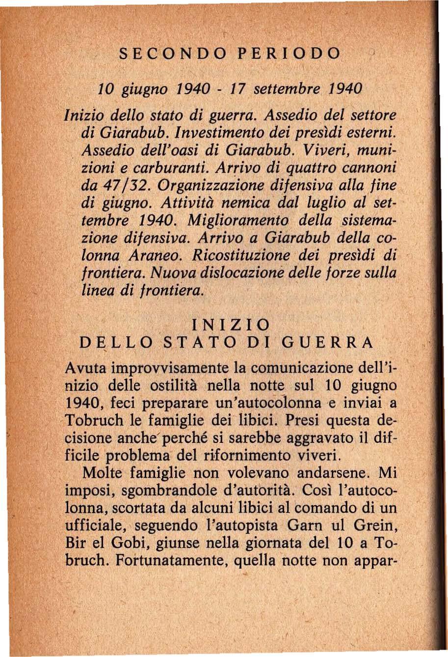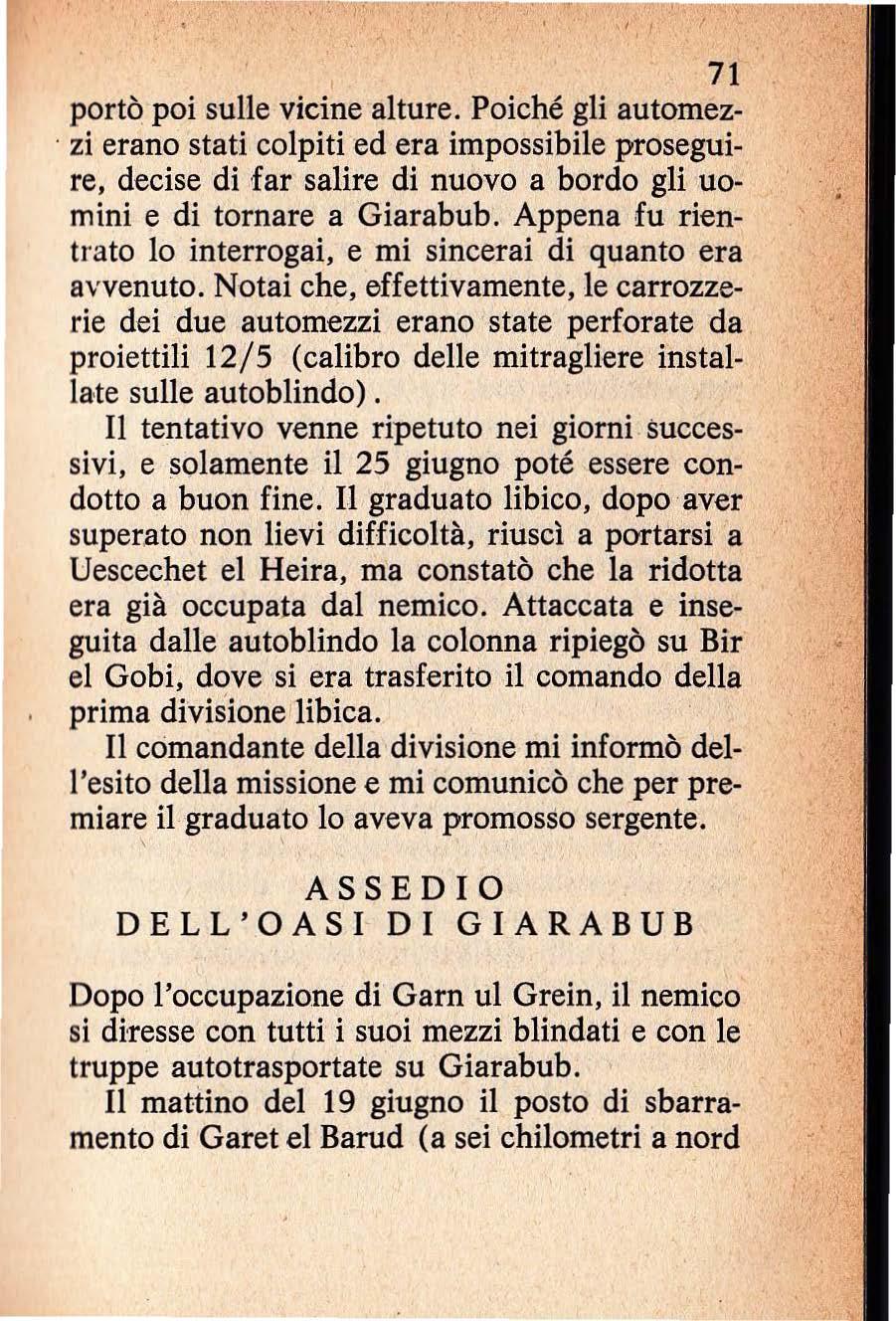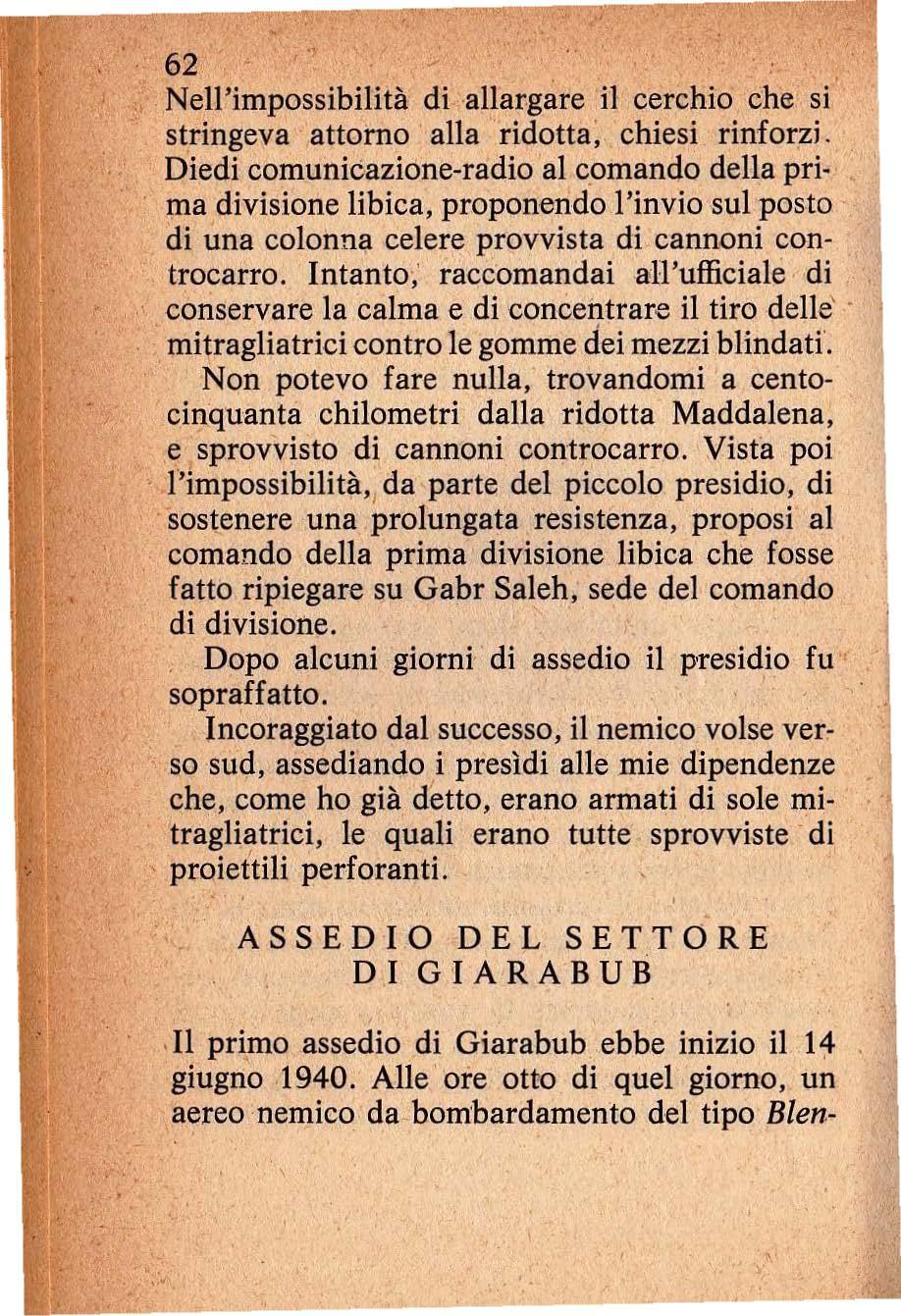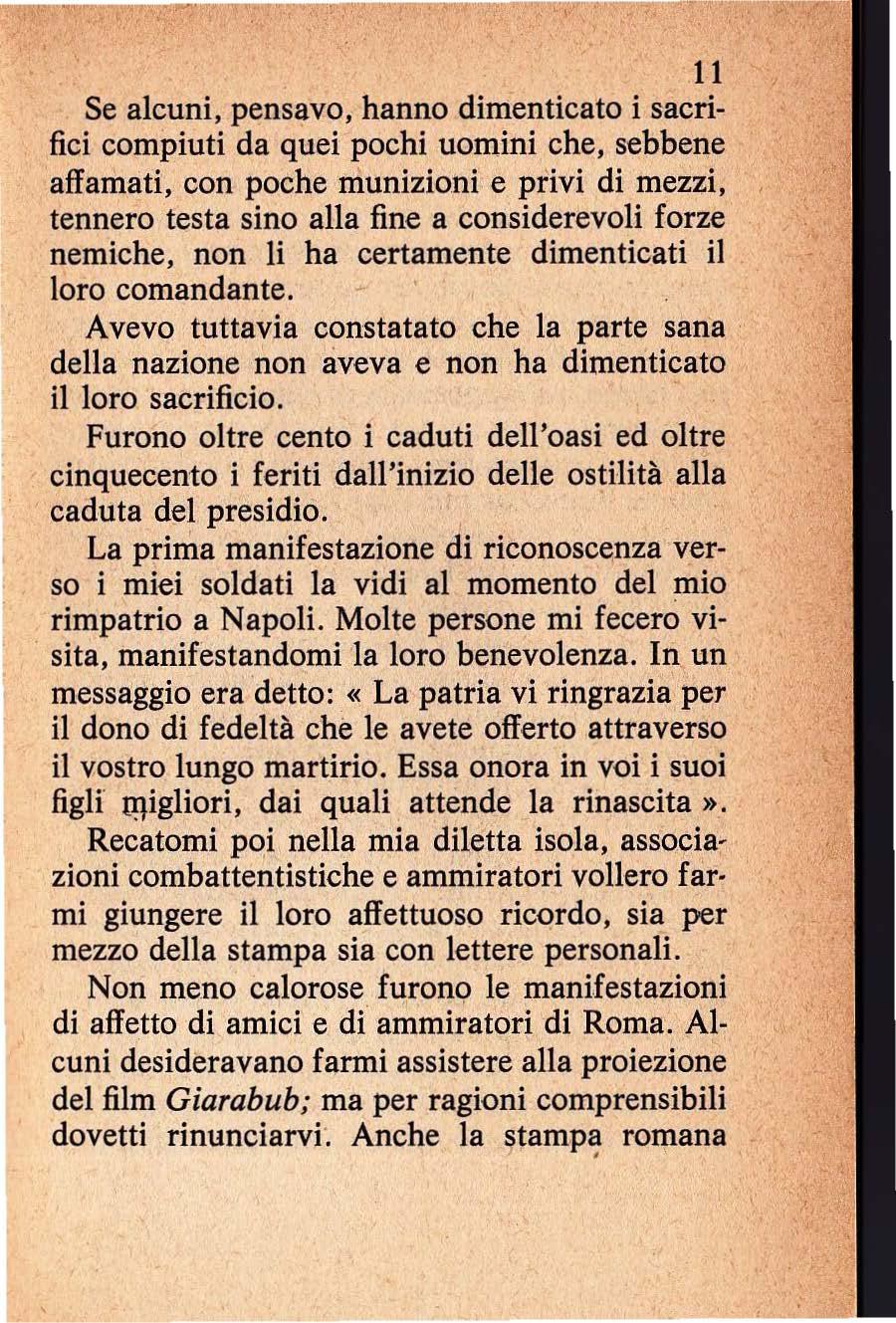 Al mio rimpatrio dalla prigionia, avvenuto il 23 novembre 1946, desideravo sviluppare i miei appunti e dare alla stampa una sintetica relazione sugli avvenimenti di Giarabub.