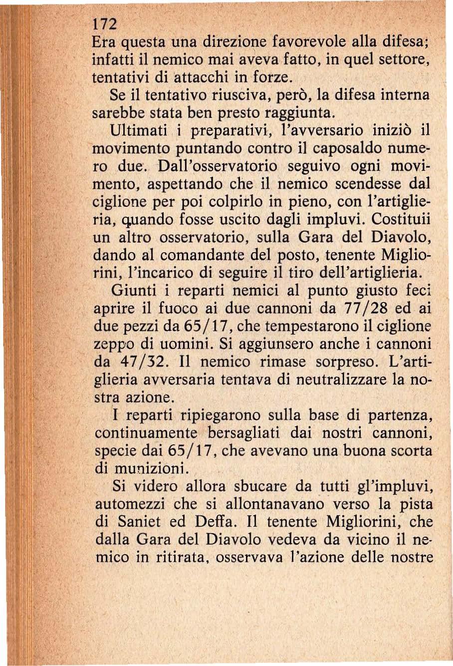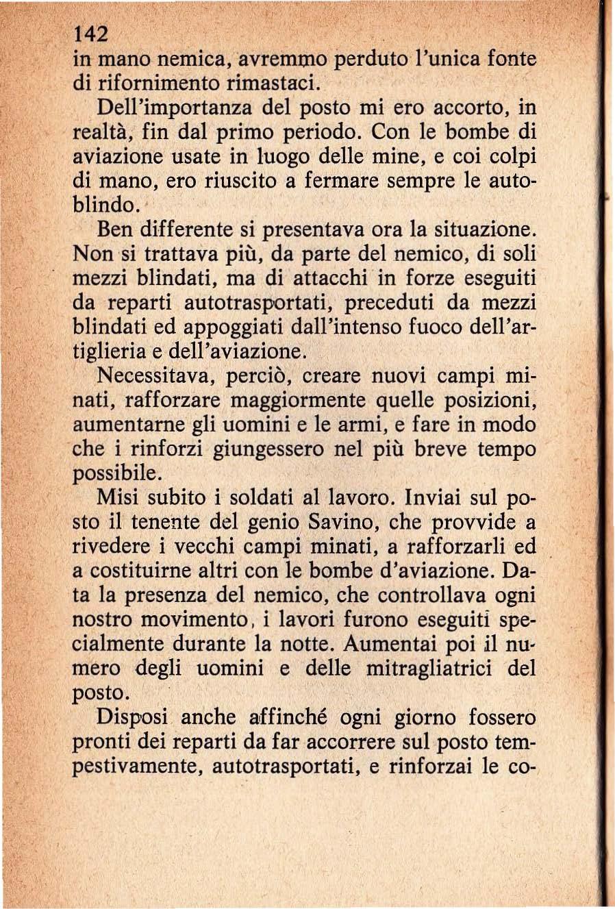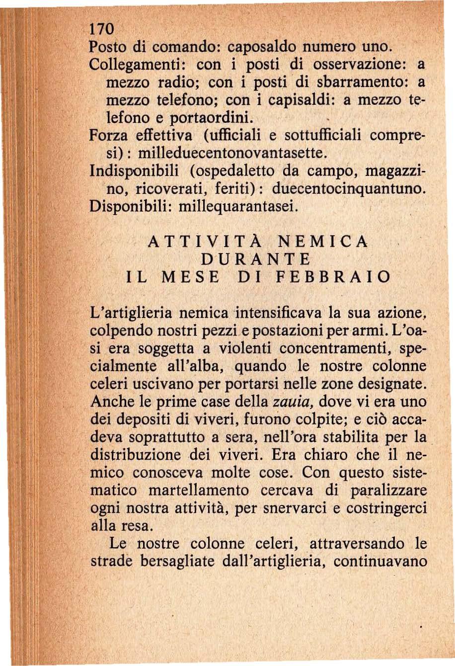Lasciando il caposaldo numero uno vidi che il nemico irrompeva negli altri capisalqi, anche dal tergo . I nostri, però, si difesero per oltre tre ore , passando spes so al contra ssalto, mentre il