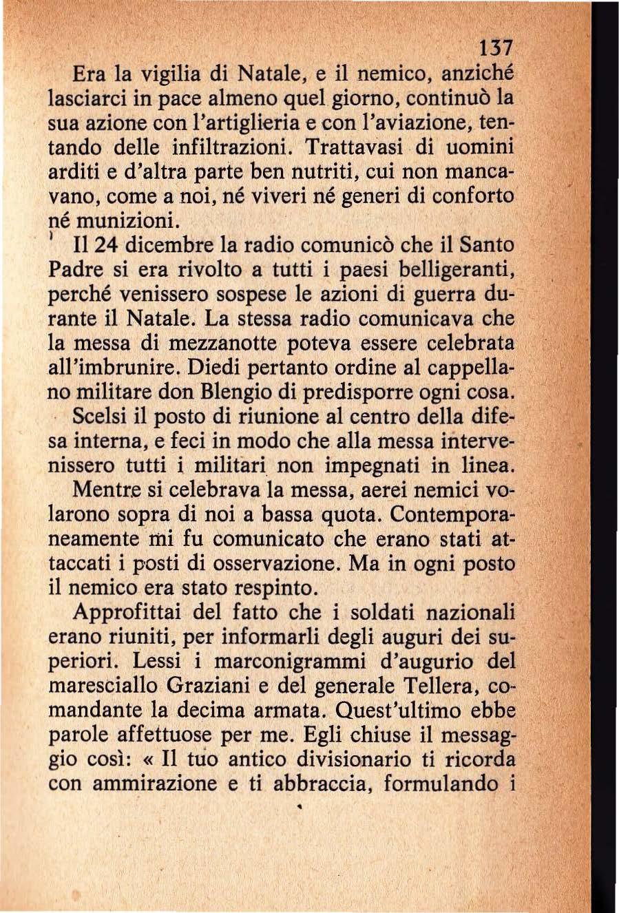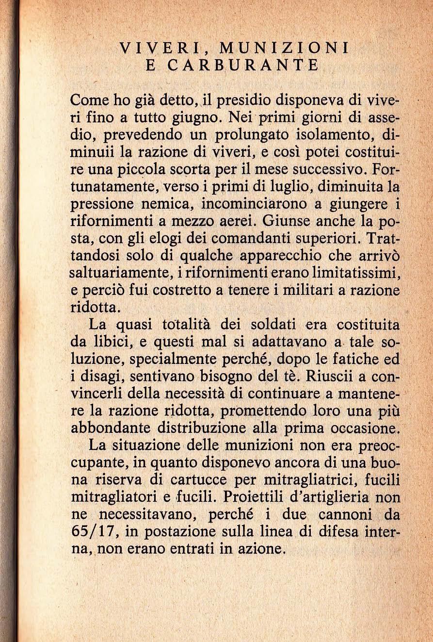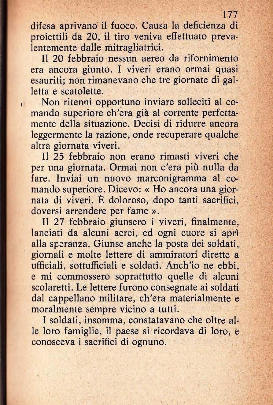 Se alcuni, pensavo, hanno dimenticato i sacrifici compiuti da quei pochi uomini che, sebbene affamati, con poche munizioni e privi di mezzi, tennero testa sino alla fine a considerevoli forze nemiche, non li ha certamente dimenticati il loro comandante.