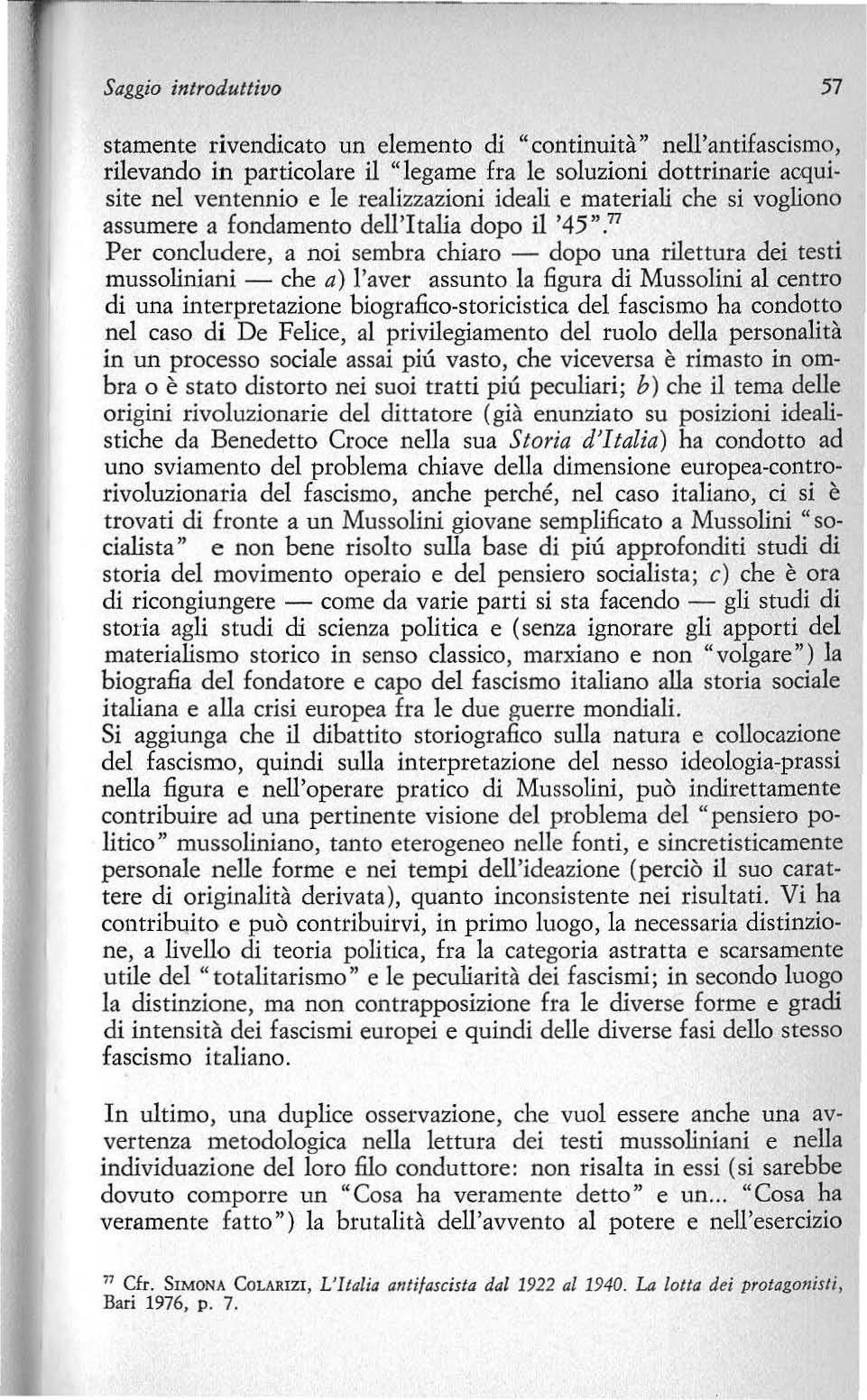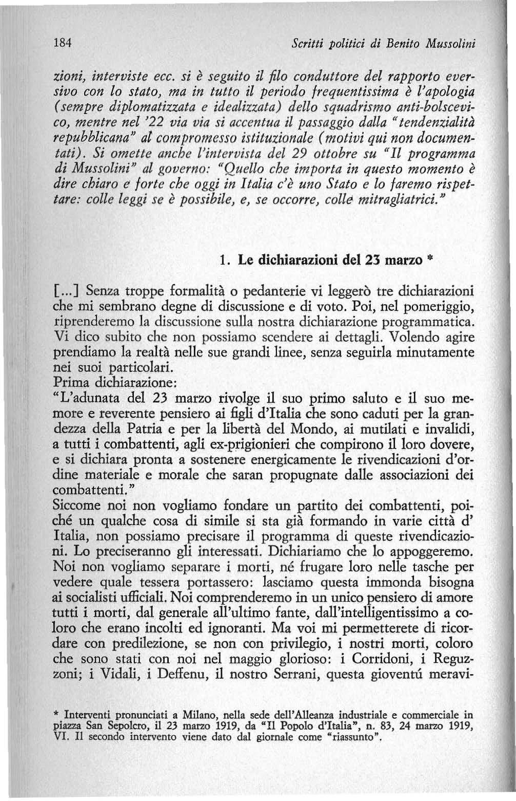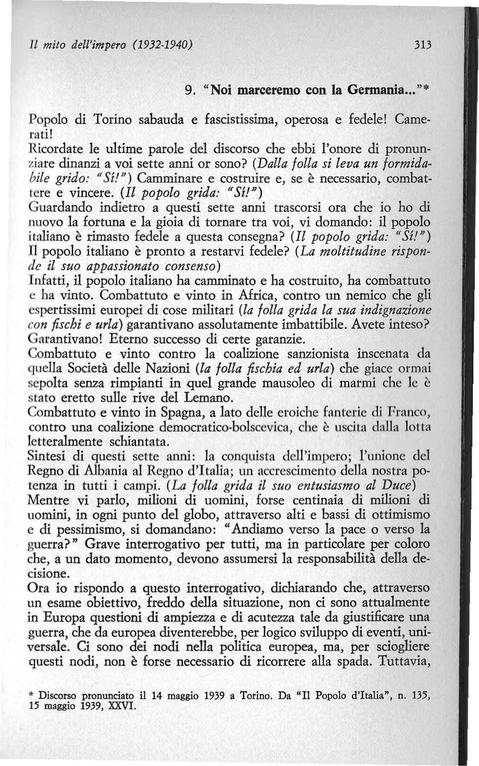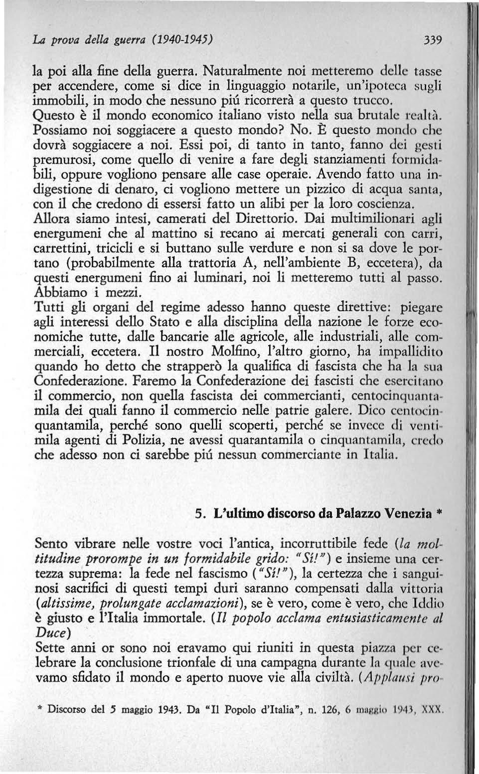 "' Da Storia di un anno (Il tempo del bastone e della carota), Milano 1944, ora in BENITO MUSSOLINI, Opera omnia, voi. XXXIV, pp. 406-411.