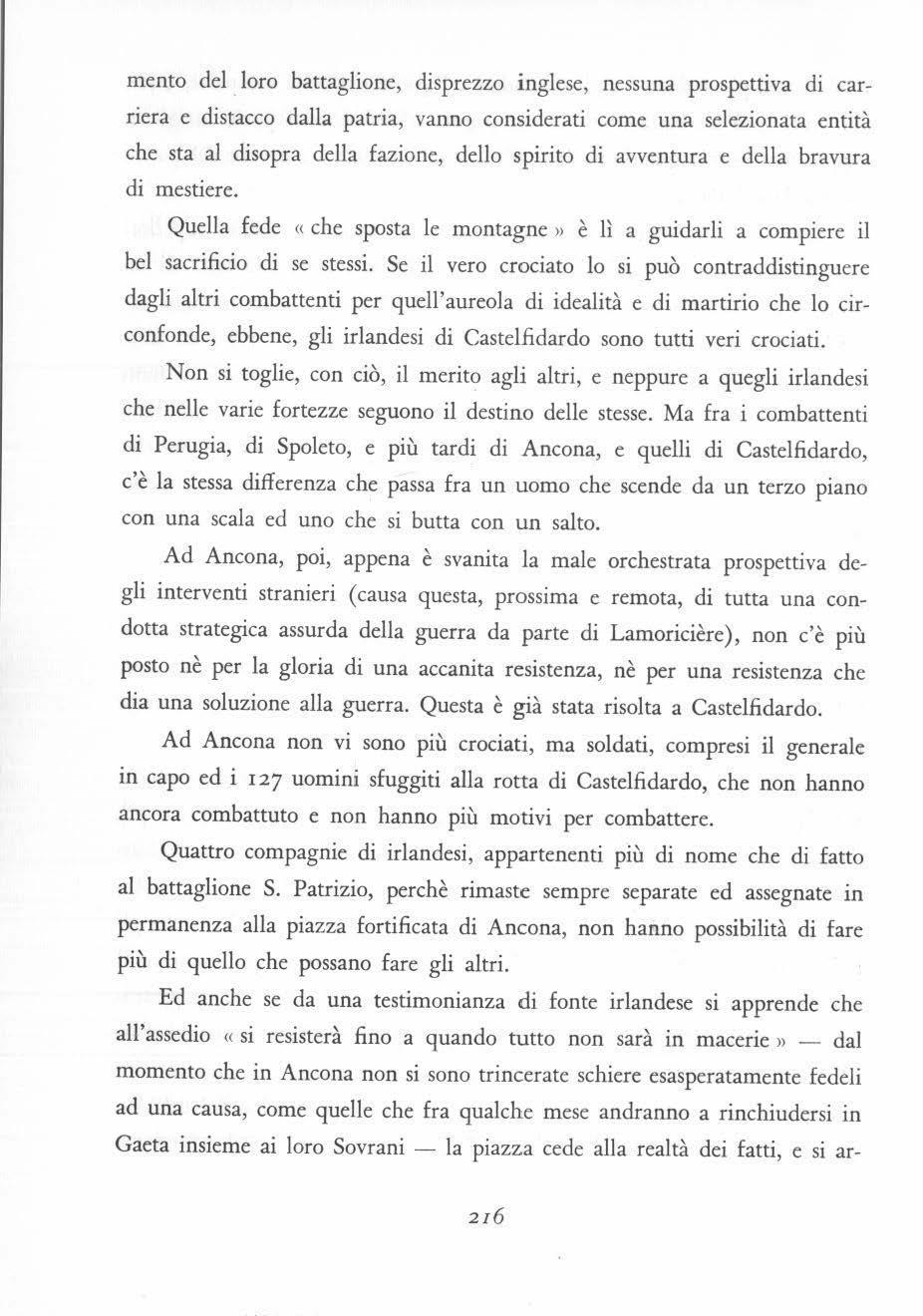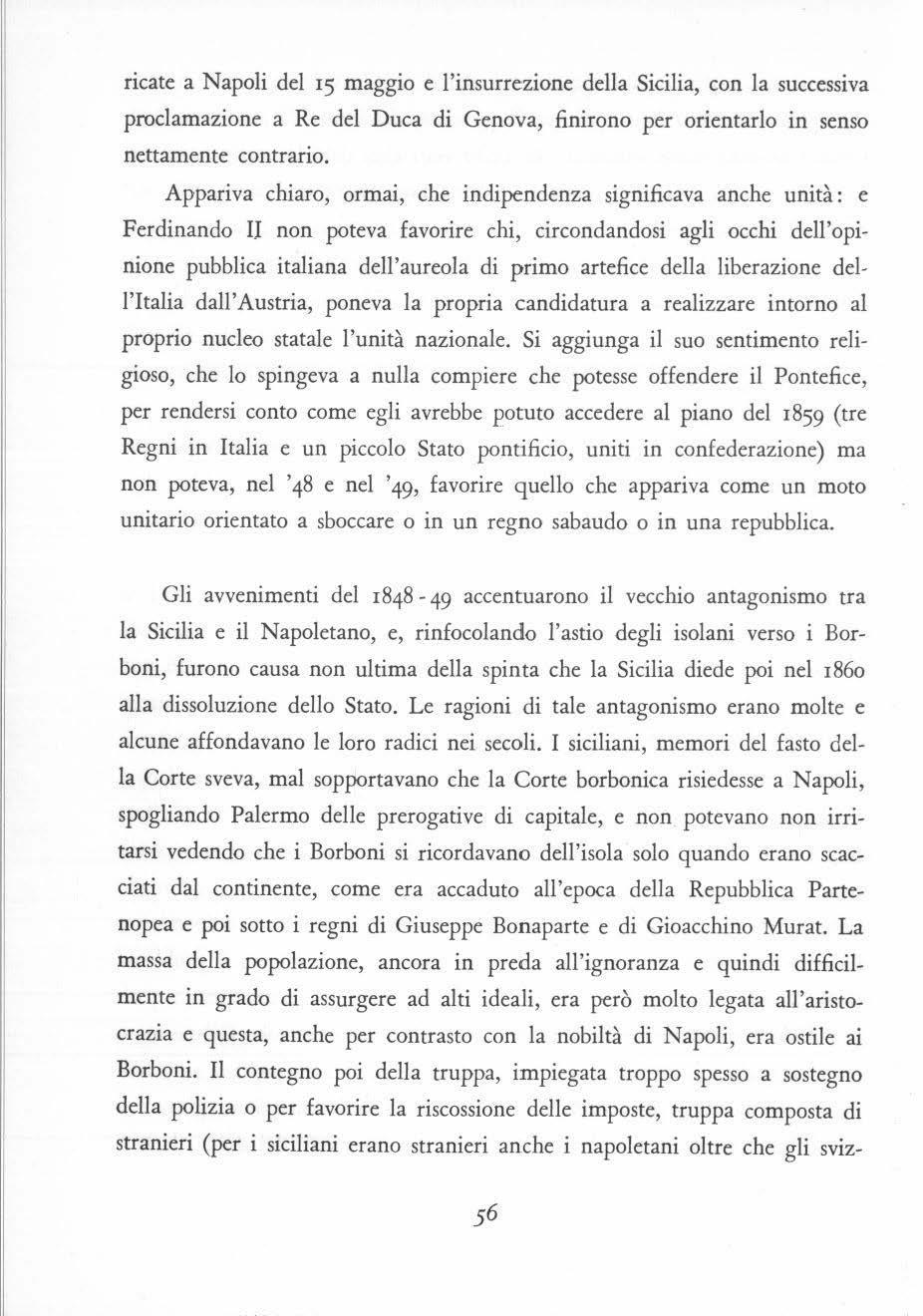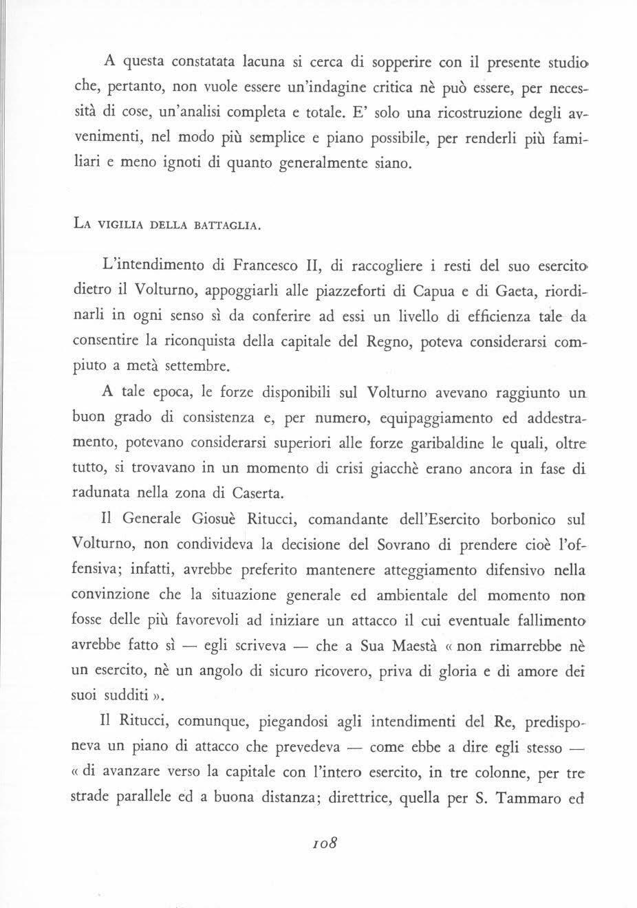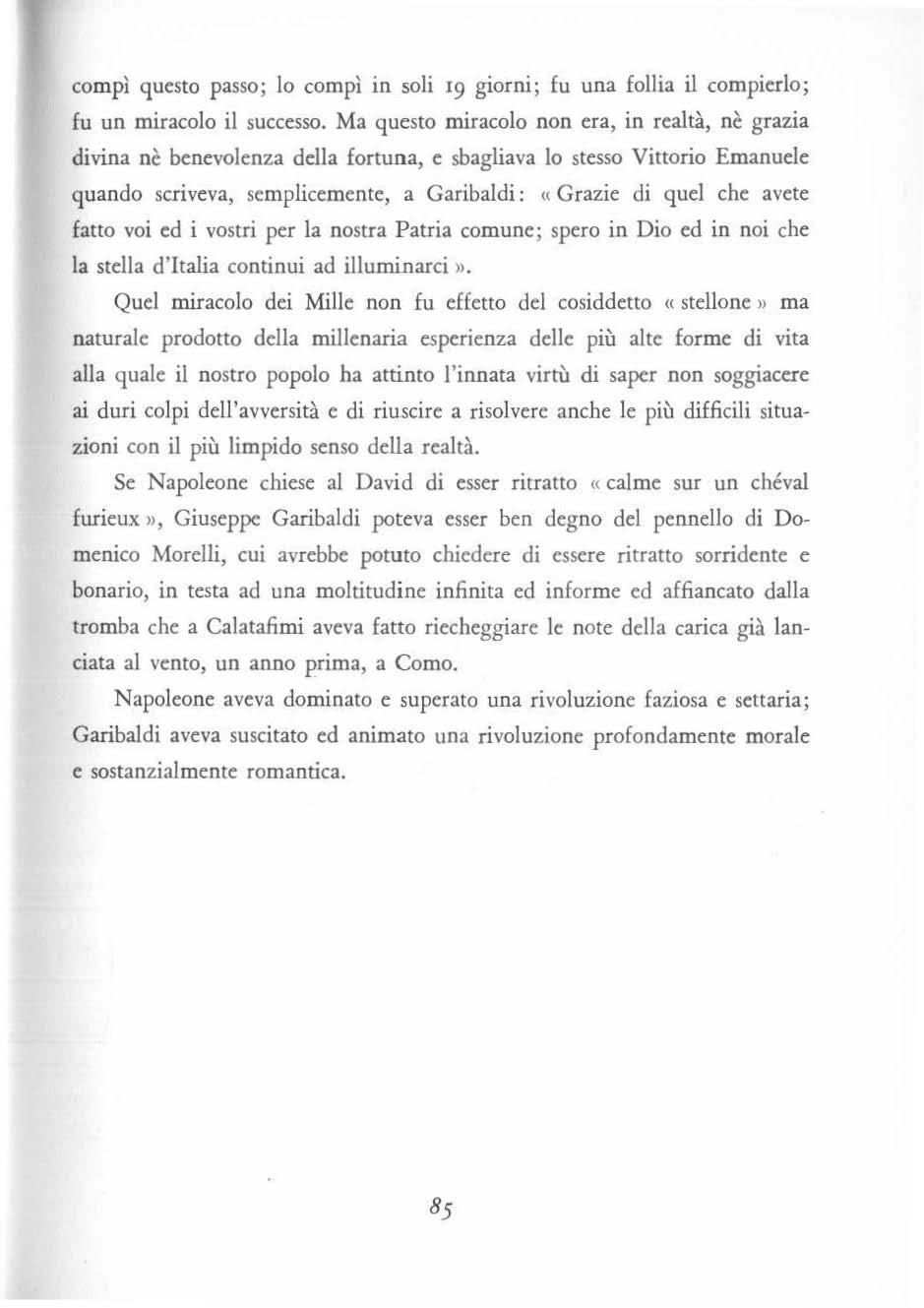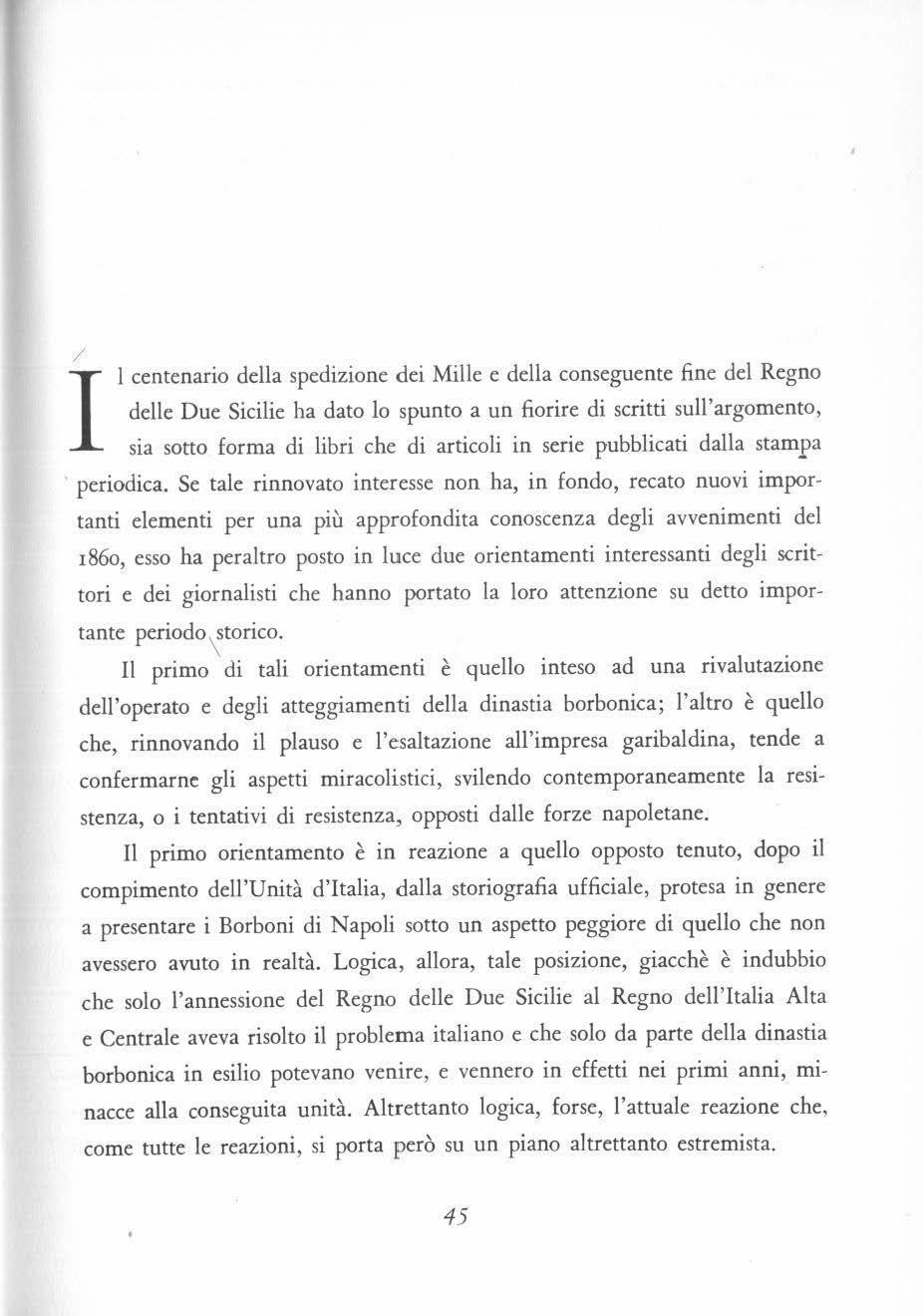Si potrebbe prose~ire a lungo sulla via di questi contrasti e ci si Po" trebbe spostare dai casi individuali a quelli della collettività: sarebbe assai agevole contrapporre al facile successo garibaldino di Calatafimi la dura e sanguinosa giornata di Caiazzo; sarebbe naturale ed anche doveroso mettere in parallelo la resa di Palermo e la incruenta campagna delle Calabrie con la ostinata resistenza di Gaeta e con il sangue profuso sugli spalti di questa Piazza