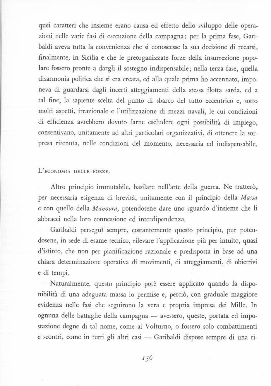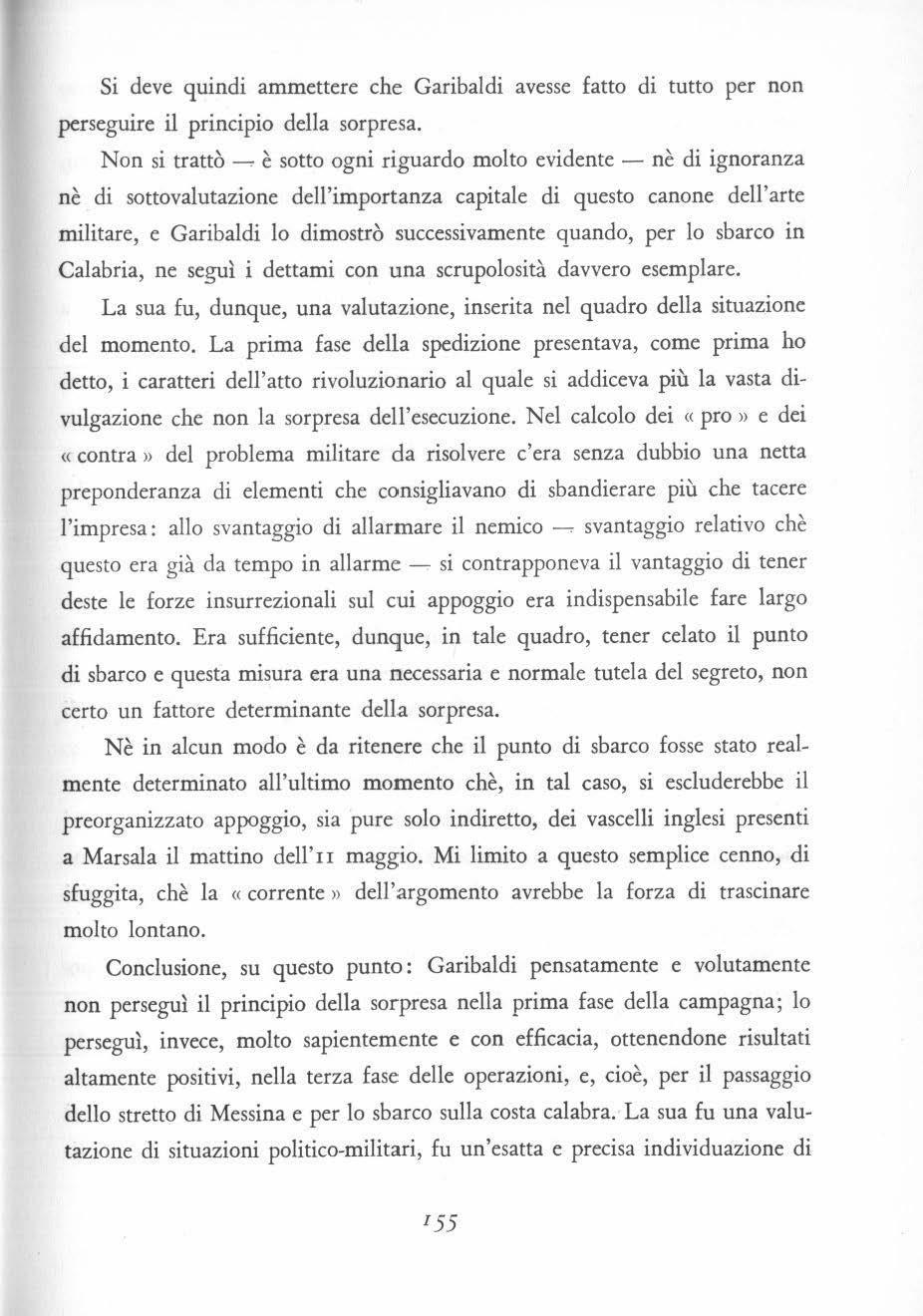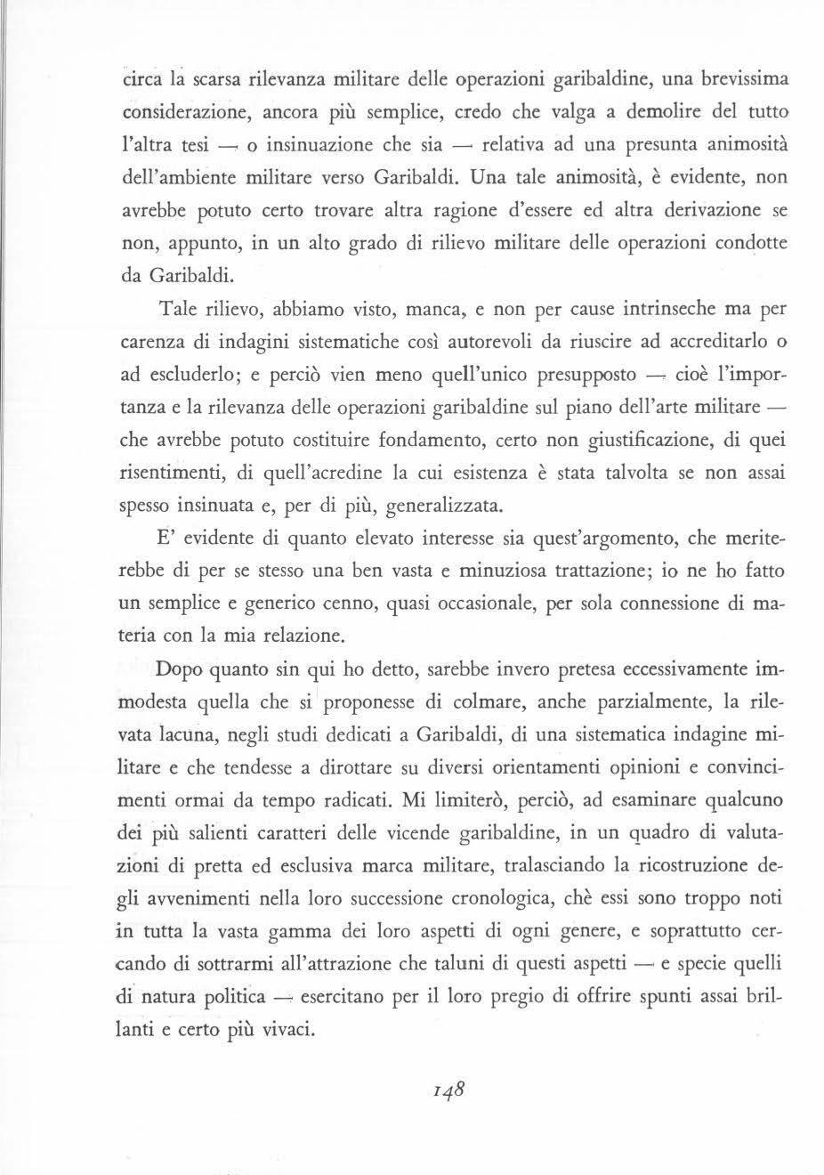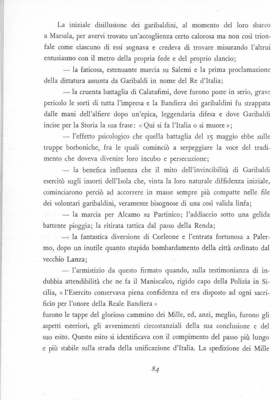 Una tale visione, piuttosto pessimistica ha portato il 1860, già di per se stesso in posizione compressa fra un '59 di euforia guerriera ed un '6I di giubilante esaltazione della più conclusiva, sostanziale e cospicua tappa del cammino risorgimentale, a non emergere, a non spaziare, a non assurgere a quel li vello di rilievo che ad esso competerebbe. E la stessa spedizione dei Mille, per la sua portata materiale e morale, ha assunto una fisonomia che potrebbe dirsi autonoma, cioè un po' staccata e distaccata, come una impresa a sè stante, con una propria aureola di gloria che la enuclea dagli avvenimenti dell'anno.