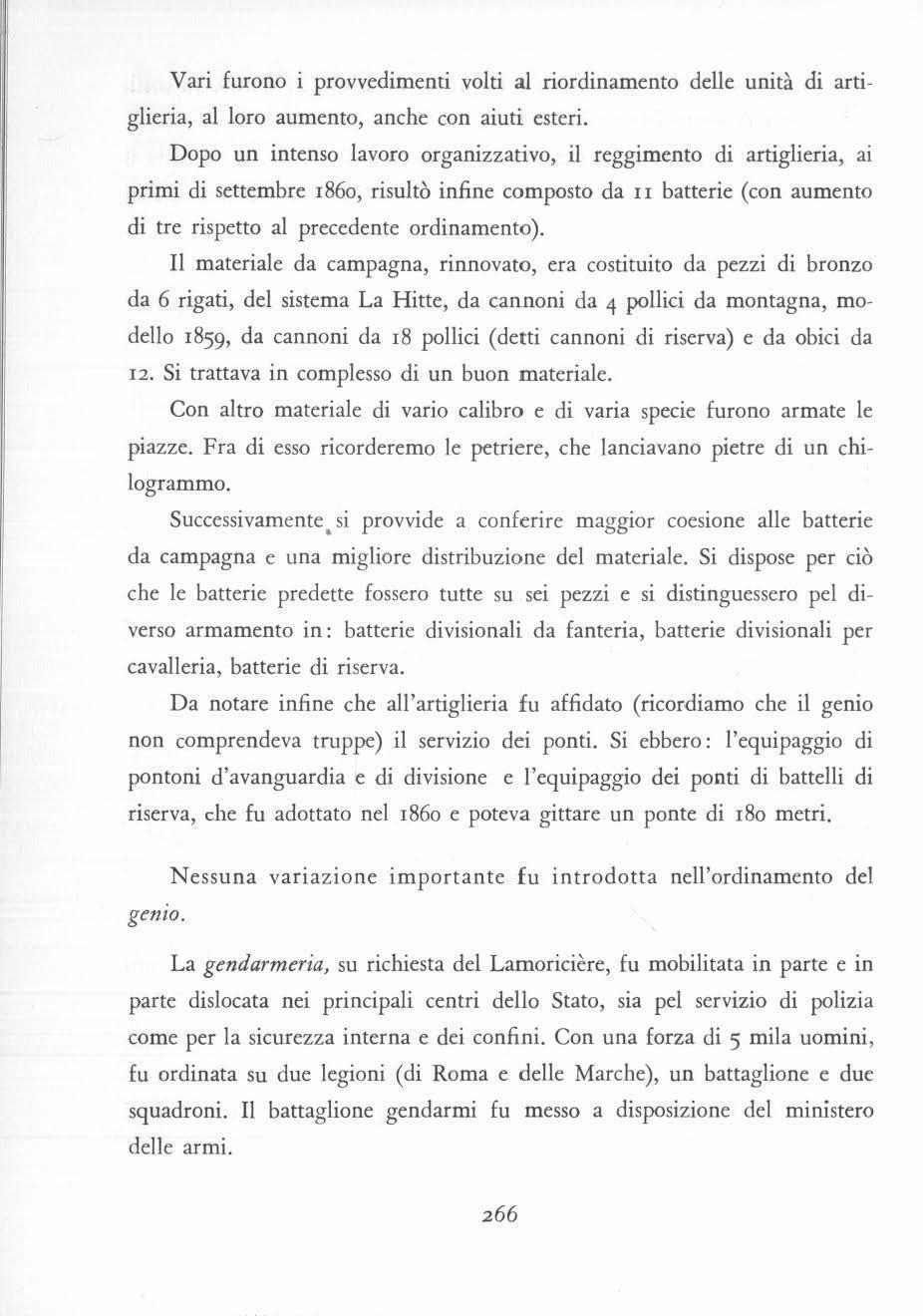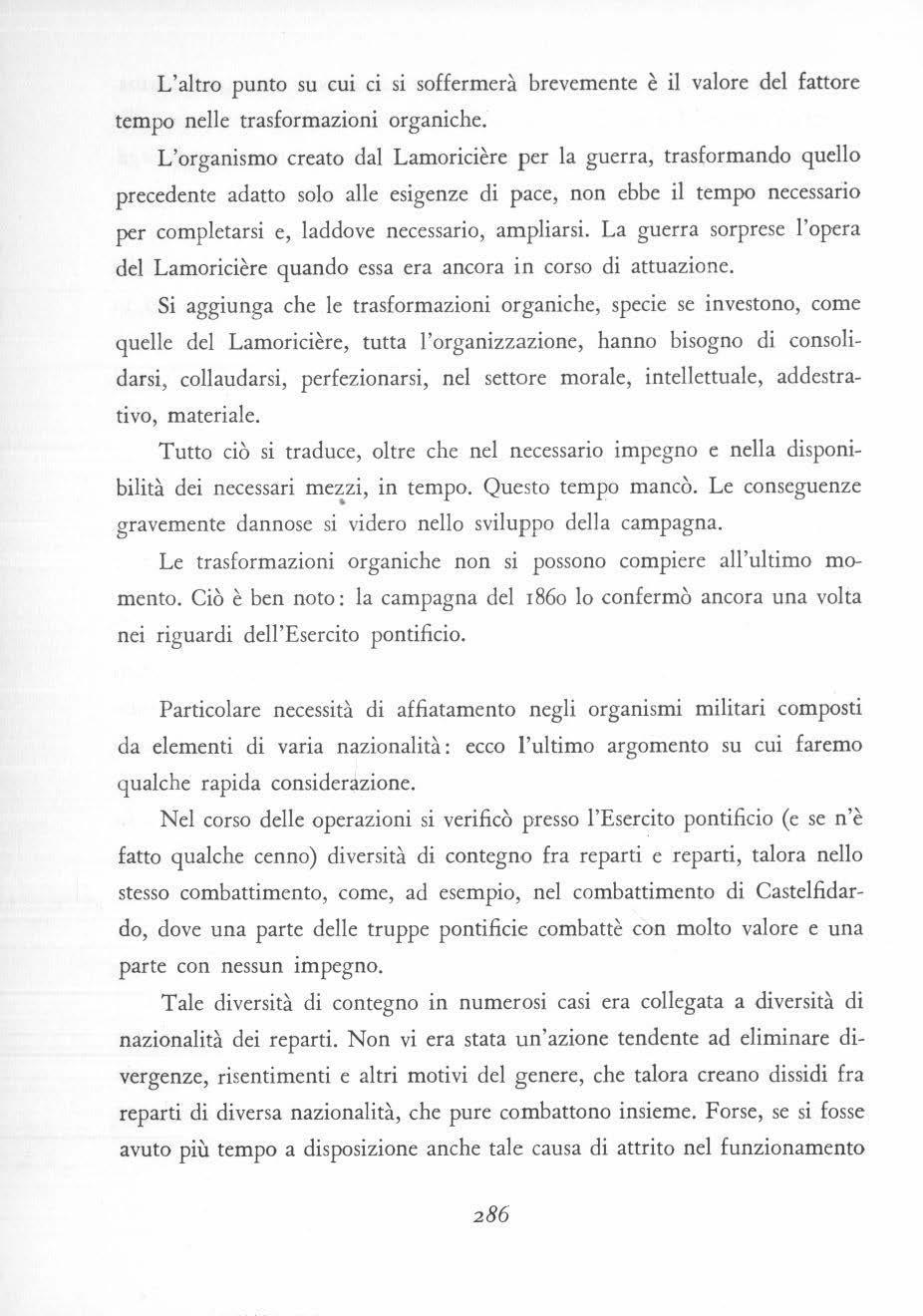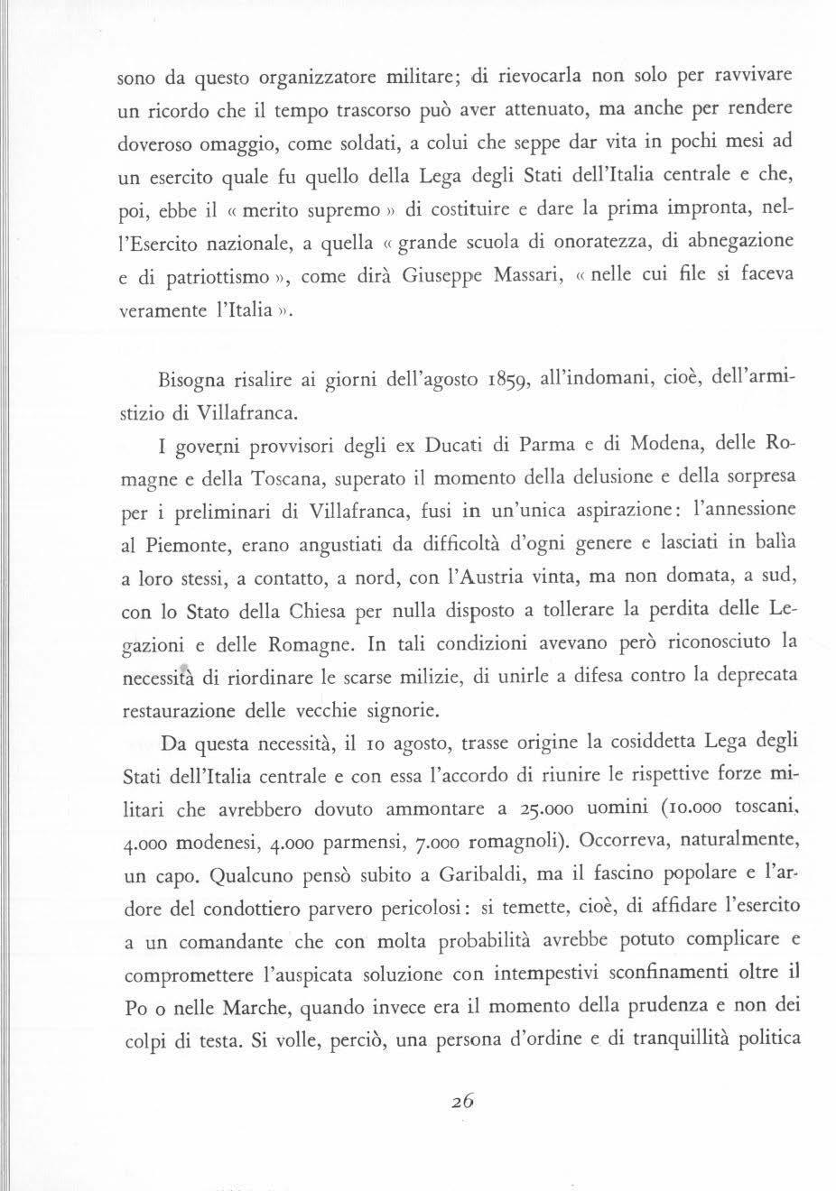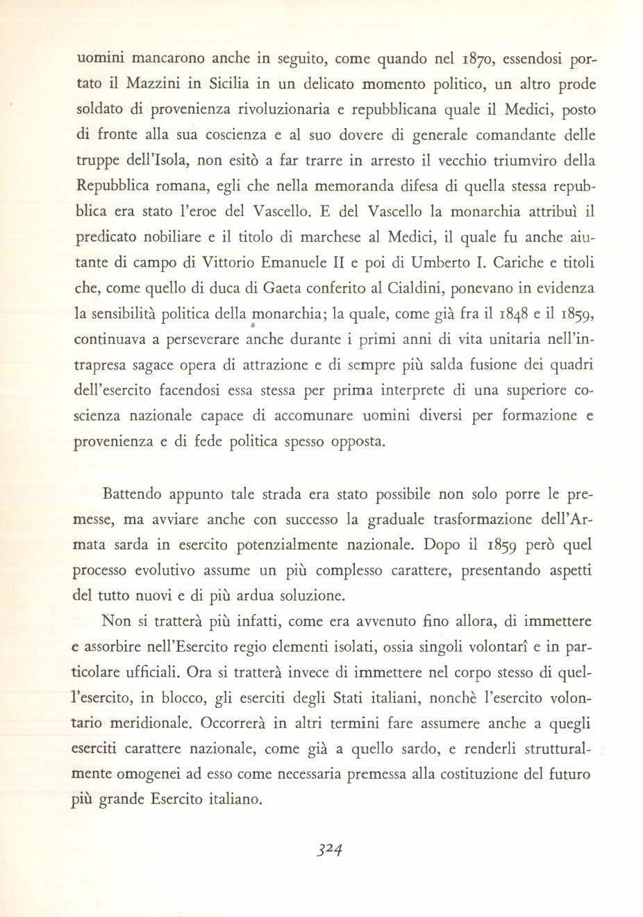 Battendo appunto tale strada era stato possibile non solo porre le premesse, ma avviare anche con successo la graduale trasformazione dell'Armata sarda in esercito potenzialmente nazionale. Dopo il 1859 però quel processo evolutivo assume un più complesso carattere, presentando aspetti del tutto nuovi e di più ardua soluzione.