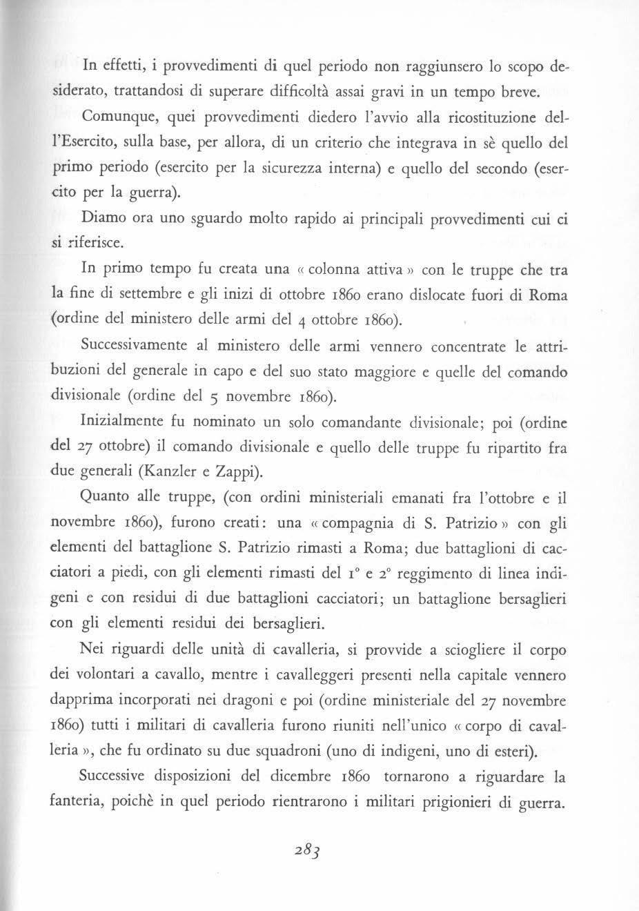 Non si tratterà più infatti, come era avvenuto fino allora, di immettere e assorbire nell'Esercito regio elementi isolati, ossia singoli volontari: e in particolare ufficiali Ora si tratterà invece di immettere nel corpo stesso di quel1'esercito, in blocco, gli eserciti degli Stati italiani, nonchè l'esercito volontario meridionale. Occorrerà in altri termini fare assumere anche a quegli eserciti carattere nazionale, come già a quello sardo, e renderli strutturalmente omogenei ad esso come necessaria premessa alla costituzione del futuro più grande Esercito italiano.