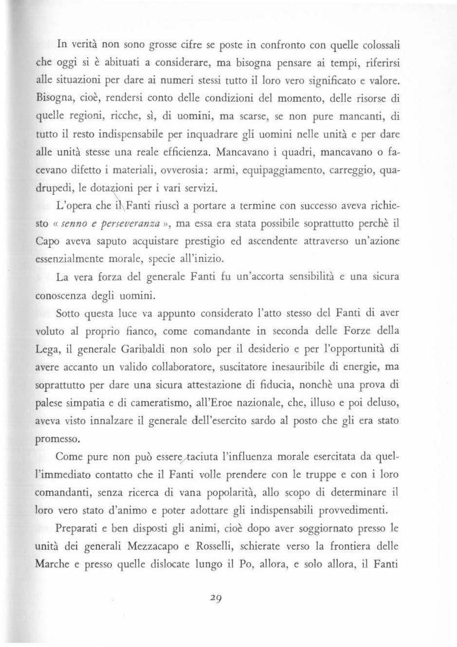 In una situazione politica particolarmente delicata quale fu quella seguita a Villafranca e pur nella instabilità che caratterizzò la vita degli Stati dell ' Italia Centrale nel periodo intercorso fra il Congresso di Zurigo e le annessioni al Piemonte, il Fanti seppe ordinare in pochi mesi un esercito che anticipava già quella più vasta opera di riordinamento e di fusione del nuovo Esercito italiano, alla quale di lì a poco egli stesso doveva por mano quale ministro della guerra del secondo gabinetto Cavour.