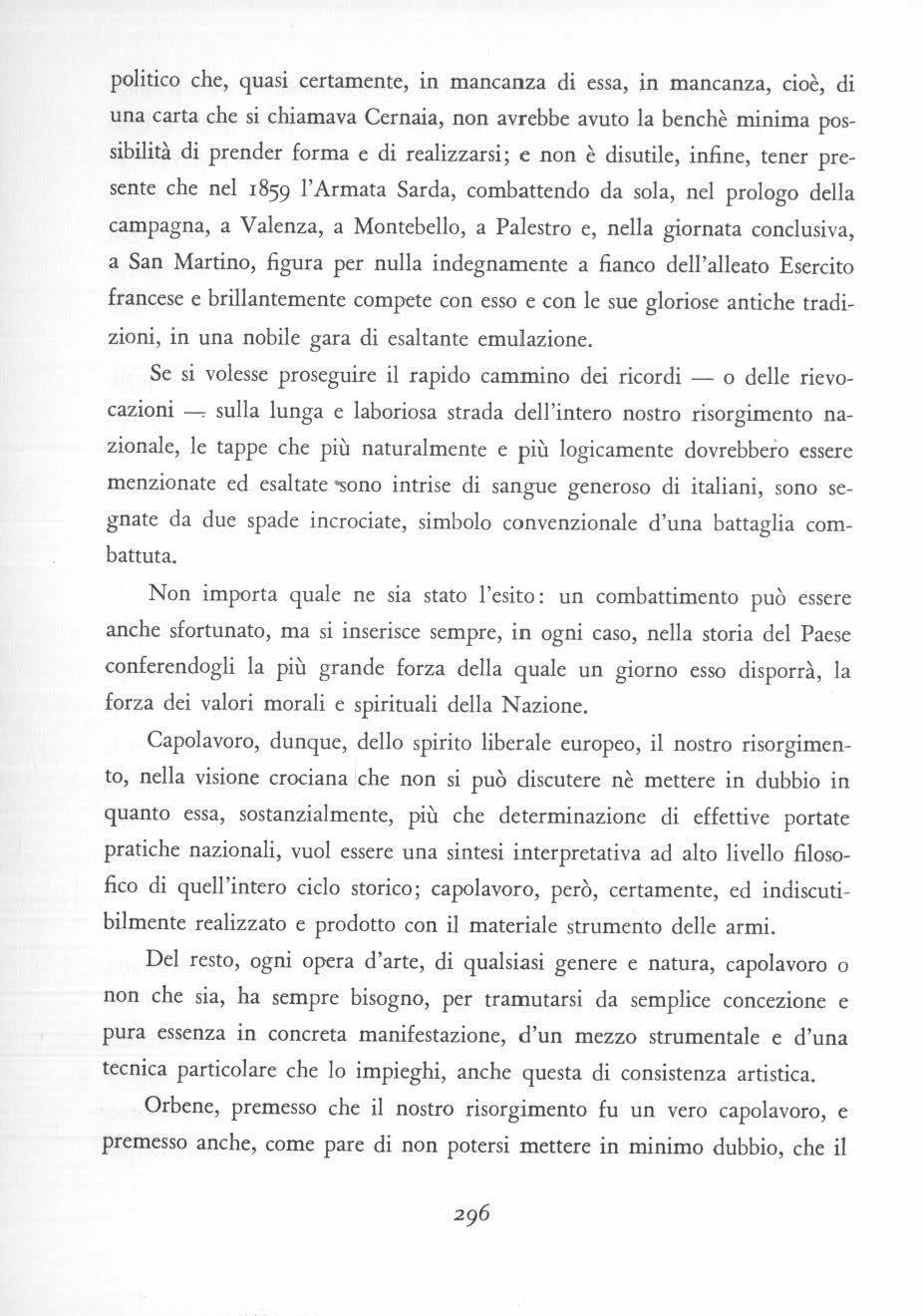 che narri un logico sviluppo ed una na turale evoluzione del nostro Paese ma, intessuto com'è di passione e di tormento , di coraggio e di poesia, di idealità filosofiche e di pratici accorgimenti sta a rappresentare la profonda essenza spirituale di tutta la nostra storia moderna ed a costituire il tessuto connettivo della nostra coscienza nazionale.