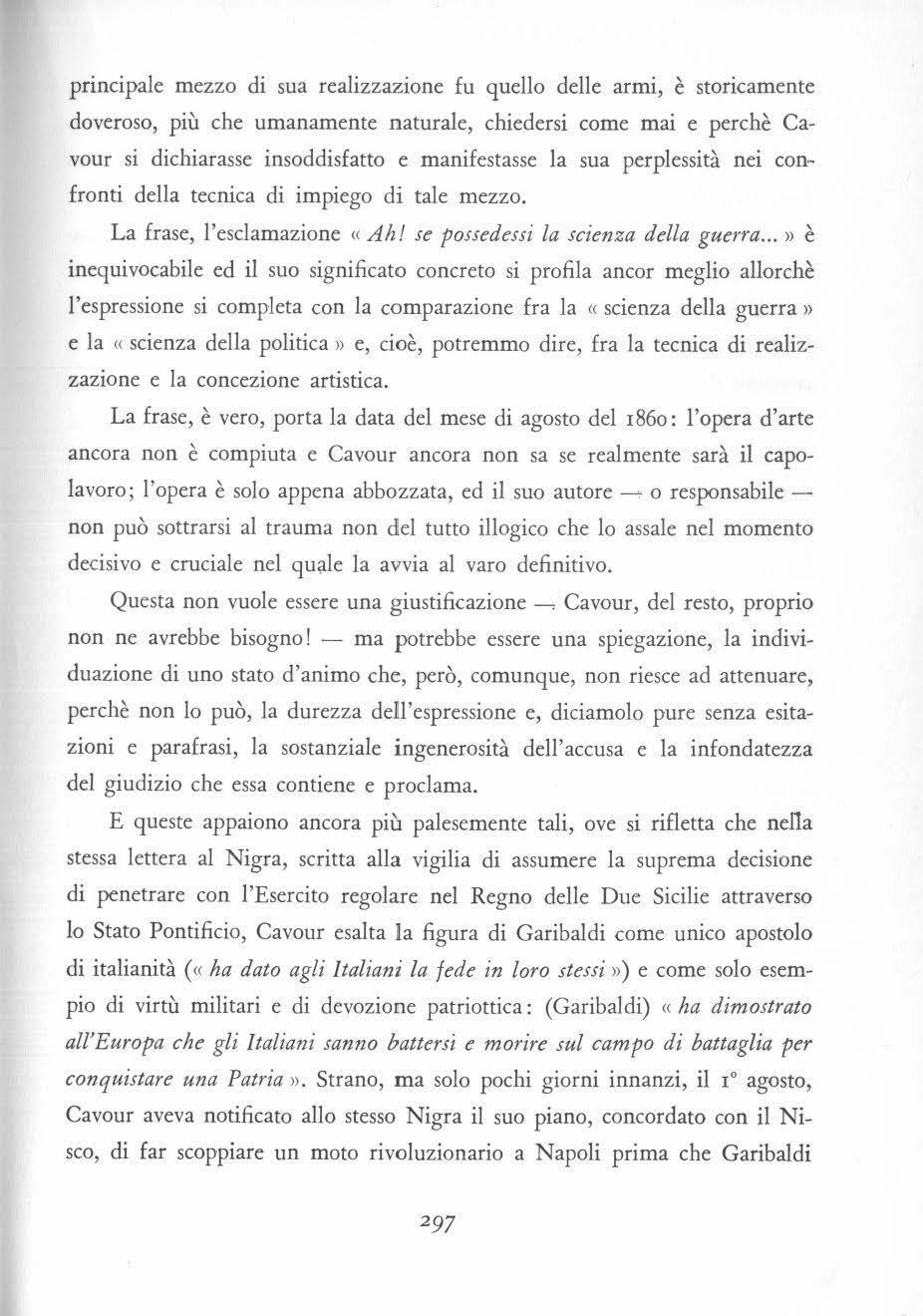 Il certo è che quella dolorosa amputazione di Nizza e Savoia, se acuiva la frattura fra lo statista e il condottiero, rendendola insanabile -----, e si potrebbe dire anche mortale tenendo conto delle circostanze che precedettero l'immatura fine del Cavour - poneva pure una solida e poderosa base al monumento che su essa e per essa doveva e poteva erigersi