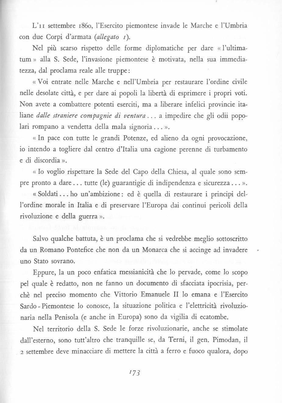 LA CAMPAGNA DELLE MARCHE E DELL'UMBRIA NEL 1860 Pag. 163 in << Riv ista Mil itare», X • 196o.