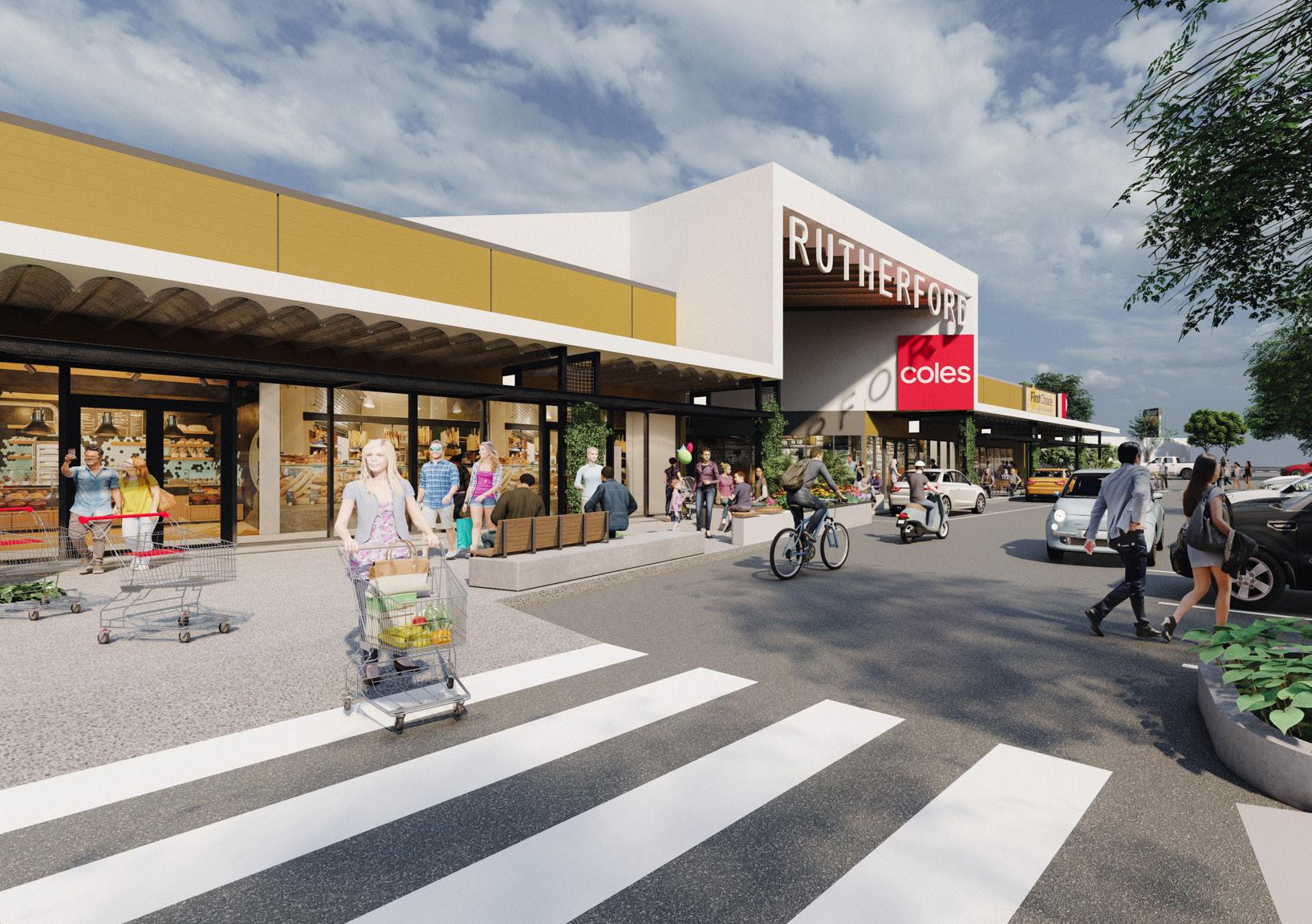 The new Rutherford Shopping Centre will create better places for people and increase activity, delivering new retail and commercial offerings. The redevelopment of the Centre, will provide opportunities to diversify the retail and convenience shopping offer to create a more varied and vibrant town centre servicing the needs of residents and visitors.
