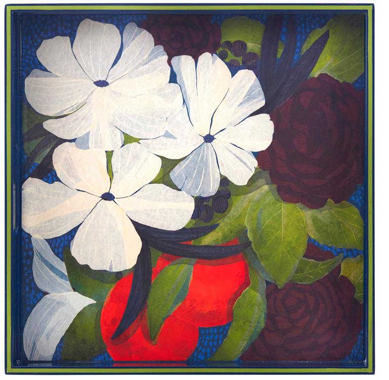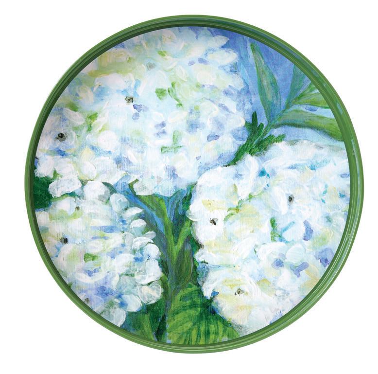WHITE HYDRANGEA ROUND TRAY 204-9952