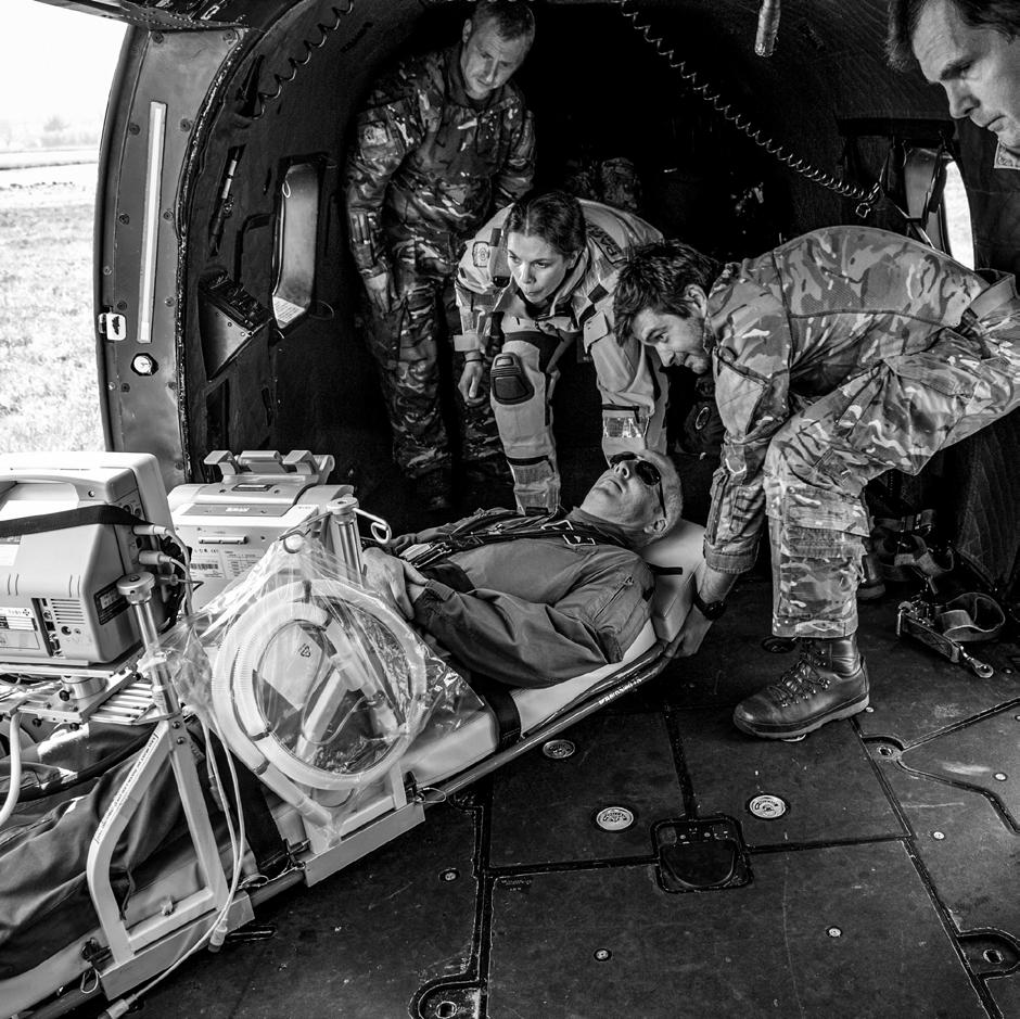 “IN THE MIDDLE OF THE NIGHT WE JUMPED ONBOARD A CHINOOK HELICOPTER. THE ENGINES WERE ROARING. IT WAS PITCH BLACK. THE PATIENT WAS ON A TAILORMADE STRETCHER ON THE FLOOR OF THE HELICOPTER. IT’S VERY DIFFERENT TO CONVEYING IN A NICE, WARM AND BRIGHTLY LIT AMBULANCE.”Dr Simon Hughes