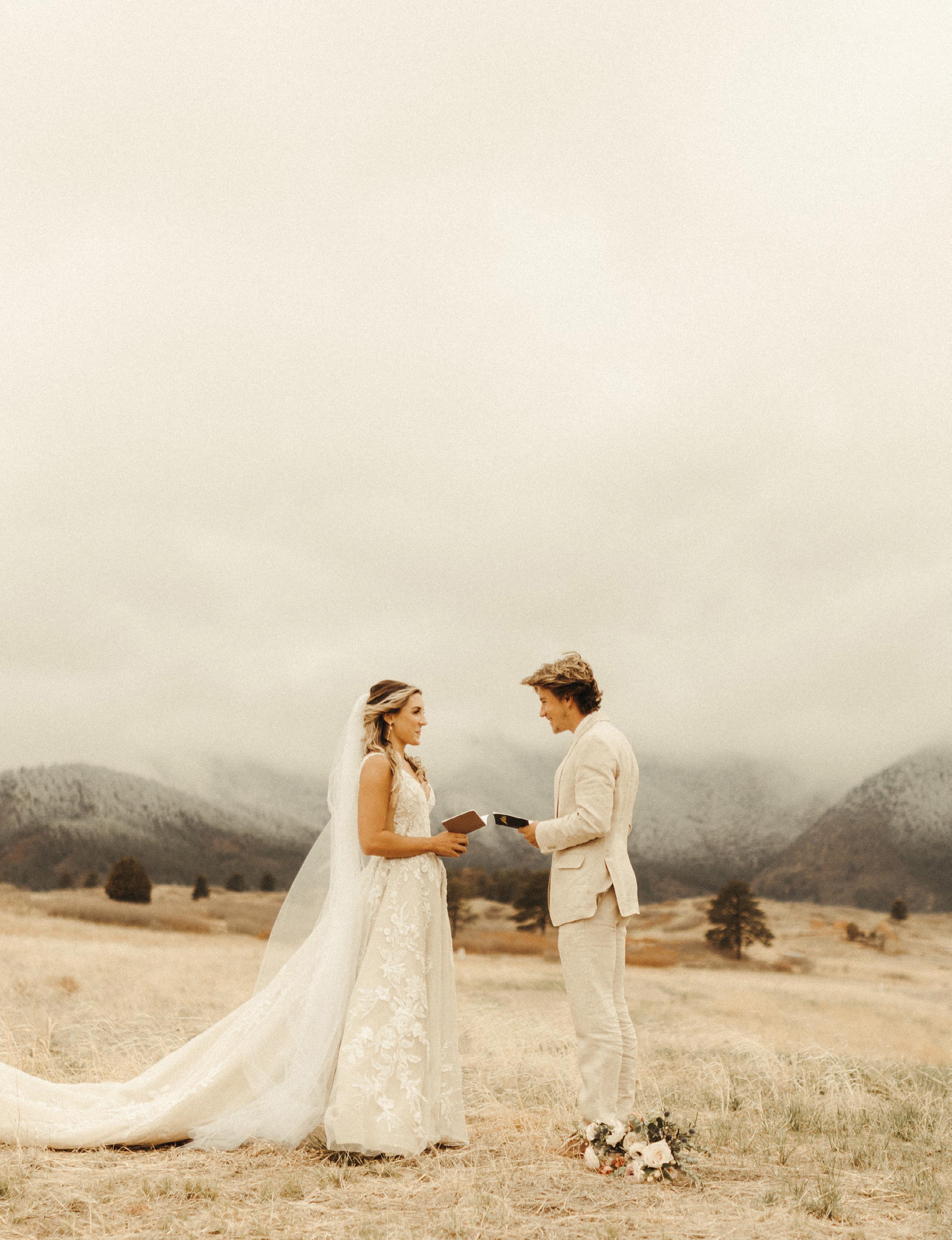 It’s time to get married! Small details, like customized vow books, will make your elopement all the more special. Once you and your spouse-to-be are all dolled up, head to your ceremony site where you will say “I do.” Your wedding day is about you as a couple and the life you want to build together, so make sure to incorporate special moments that reflect you both.