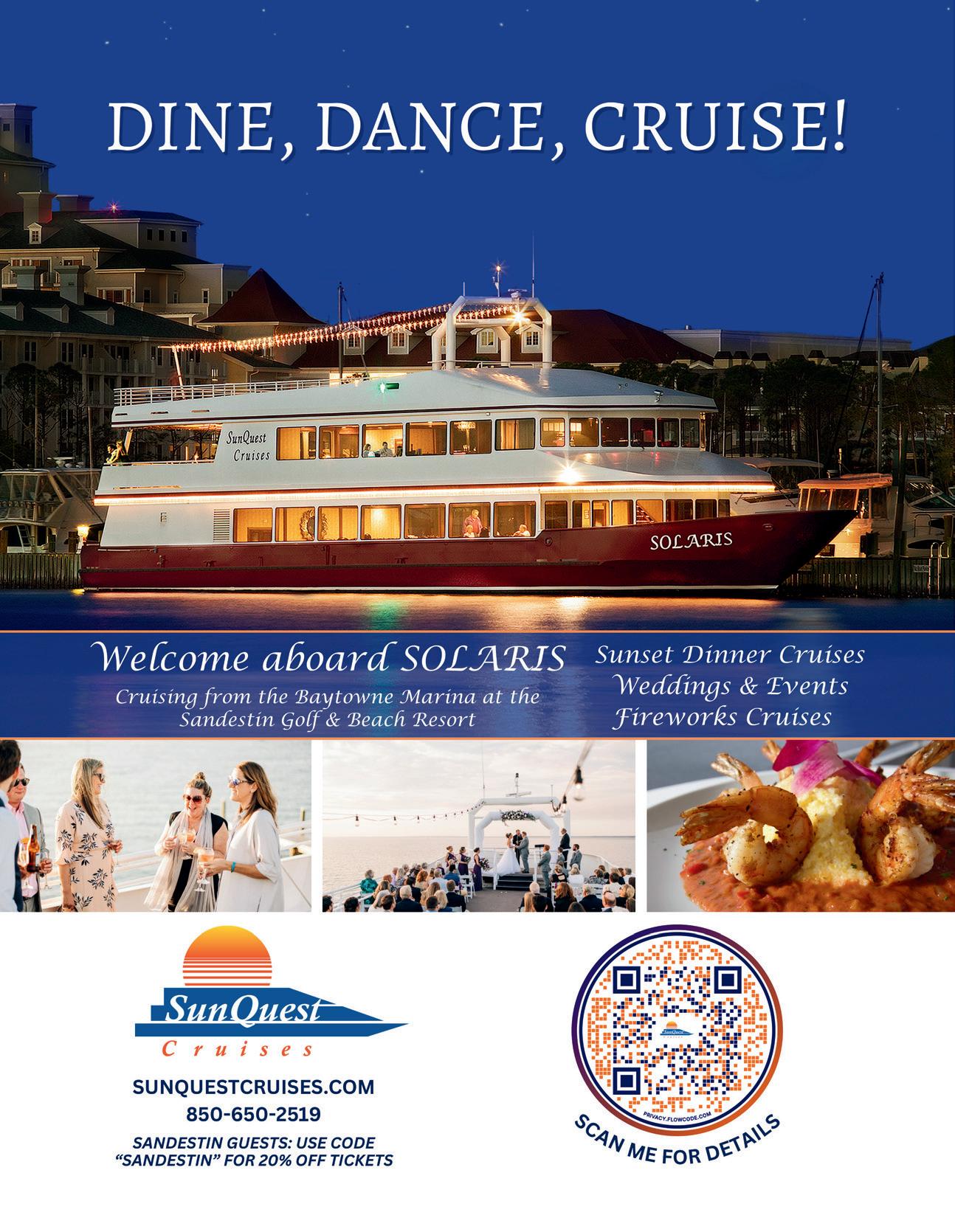 (855) 635-3991 SANDESTIN.COM SUMMER–FALL 2024 9 Sandestin Living® is published two time per year by Sandestin Golf and Beach Resort® and Sandestin® Real Estate of NW Florida, LLC DBA SRE. Copyright Sandestin Living®. All rights reserved. Reprint in whole or part without written permission is prohibited. Publication Design and Management by Rowland Publishing, Inc.