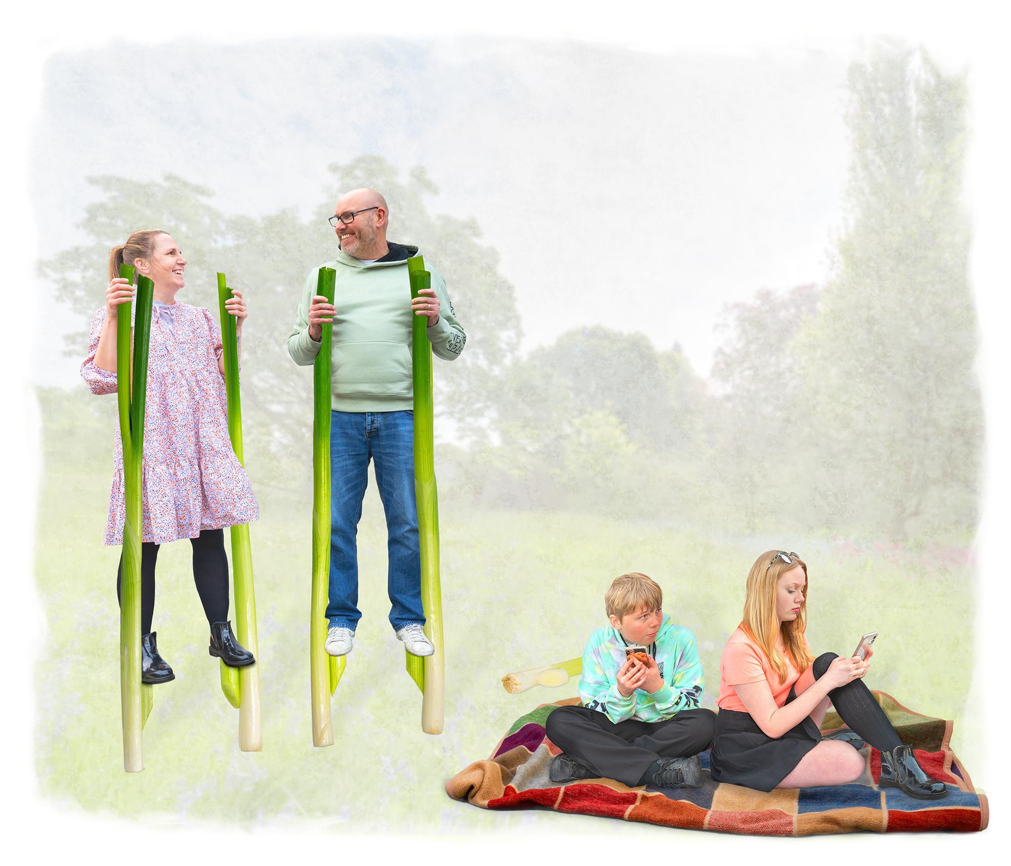 As Lee and Kirsty walked in on Spring Onion stilts!