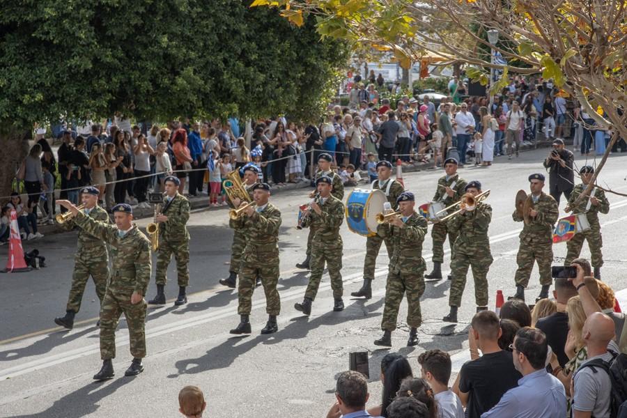 The parade was watched by what appeared to be the whole population, with bands playing military music, national costumes being worn, and each group in turn being applauded by the crowds. Everyone appeared to be really proud particularly those lucky enough to carry the Greek flags.