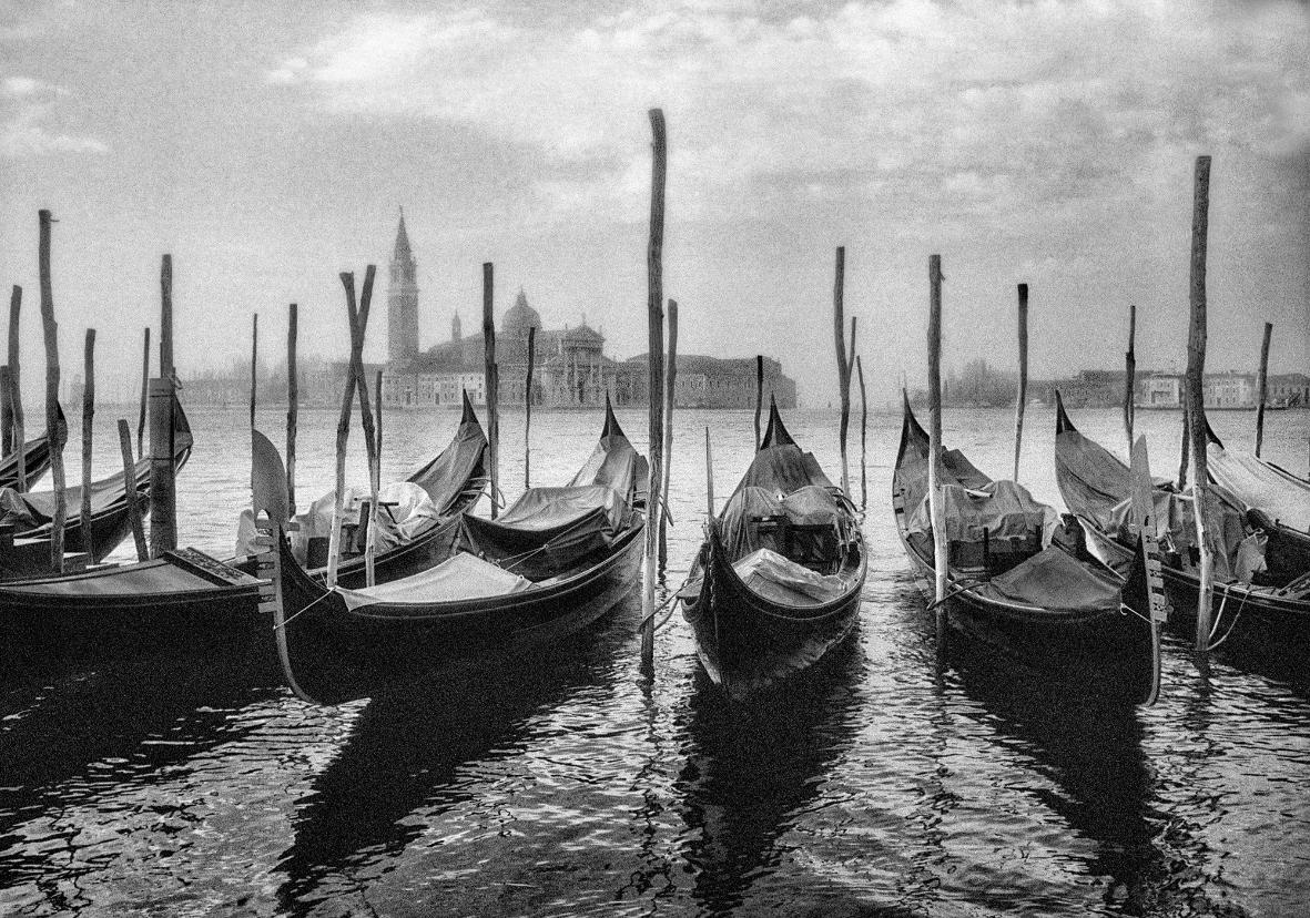 My favourite is the one of Venice on the opposite page. It's obvious what it is and where it was taken. I've seen dozens of similar ones in the time since I took it in 1991. It was originally taken on infra-red film, but more latterly it has been digitally scanned and then more grain added as well as some dodging and burning in post processing.