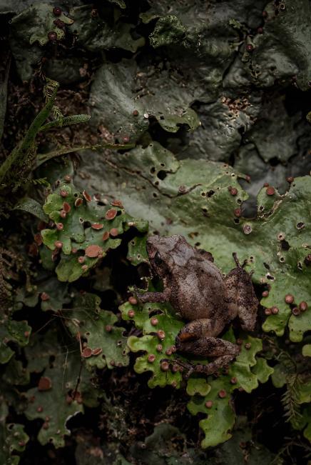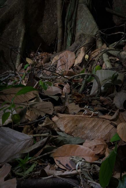 Clay-coloured rain frog (previous page). This was taken late one afternoon when the frog started to become more active; therefore I had to be patient for it settle in a pleasing position in the banana leaves.
