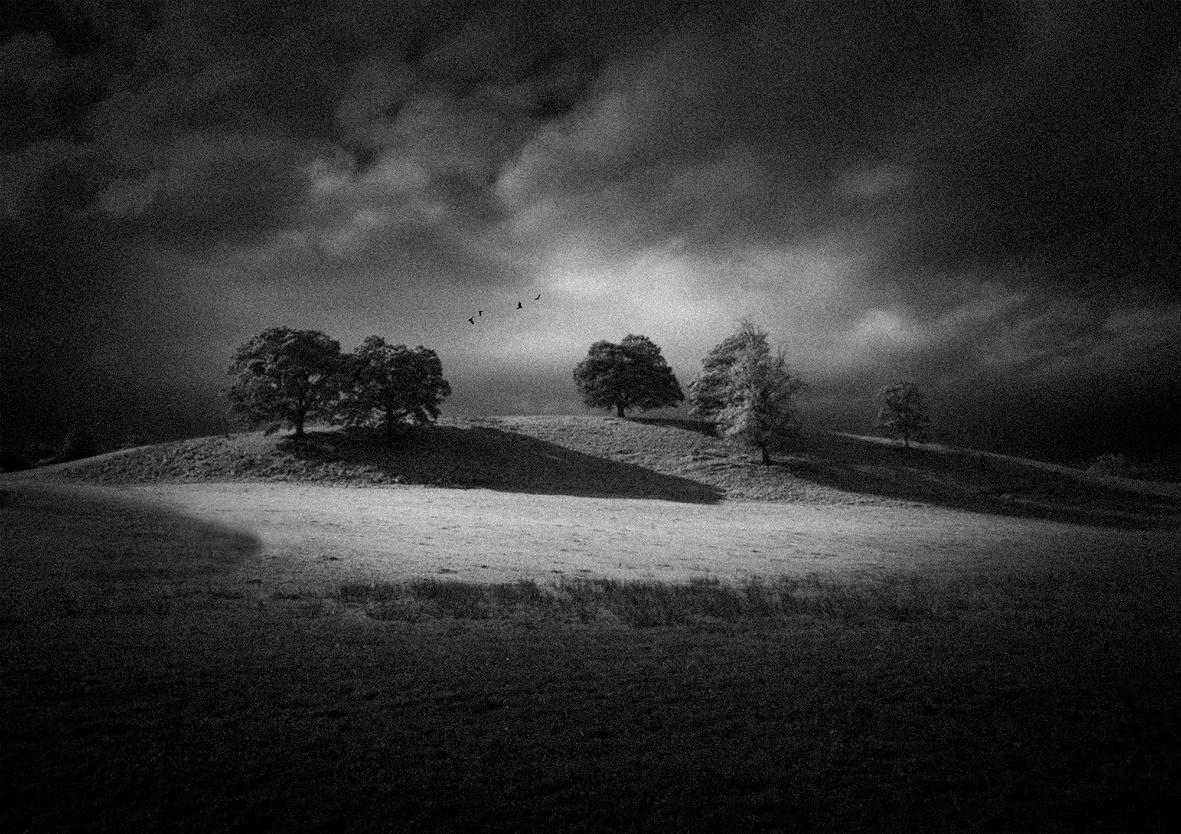 An image that was in the panel on my Advisory day is this one taken in the Lake District. I was struck by the symmetry of three trees on the horizon of a hill and processed it in HDR colour. I really liked it and had it on my wall for some time. More recently I thought I’d try reprocessing it completely differently in B&W. I loved the image even more.