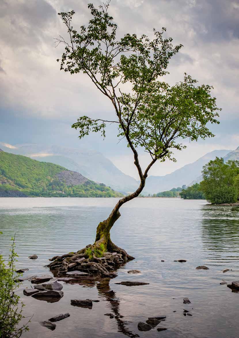 The Lone Tree, Llyn Padarn, Llanberis Photographed for many years, the clear water creates the perfect reflection, and the tree is framed by the mountains of Yr Wyddfa on one side and the Glyders on the other. The lake is also the legendary location of Arthurian legend of Excalibur, the Lady of the Lake, Merlin and King Arthur. Misnamed, the Lone Tree is never really alone