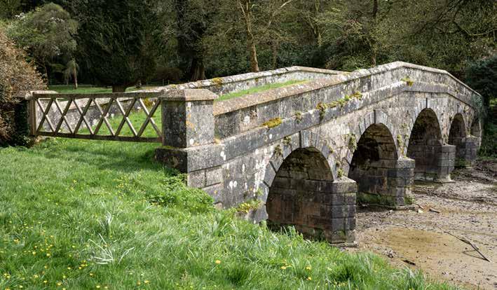 The Stourhead example was built in 1762 and is a five arched stone bridge that today has weathered significantly providing host to various lichens, wildflowers and also possesses a grassy top that also plays host to buttercups.