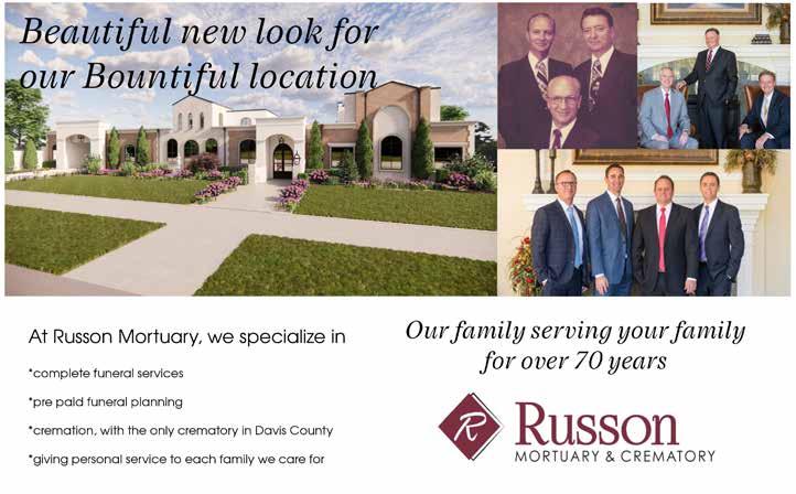 Lindquists AD Custom Made Locally in Ogden www.SandandSwirl.com Schedule a visit to our showroom 801-389-6363 2620 Wadman Dr. Ogden Worry Free/Grout Free Surfaces • Mold Resistant • Sealed • Very Low Maintenance Affordable • Carrara Cultured Marble • Trustone • Cultured Granite • Subway Tile Mom Wants a Care Free Bathroom! Mom Wants a Care Free Bathroom! 385-393-7824 Clinic Director Board certified in pelvic floor rehabilitation to treat anyone suffering from pelvic floor and orthopedic issues. AspenRidgePhysicalTherapy.com 2052 W. 1700 S., Ste. B5, Syracuse Syracuse Clinic Now Open Monday, Wednesday, Friday 8:00 a.m.–4:00 p.m. Tuesday, Thursday 9:00 a.m.–6:00 p.m. Closed for Lunch 12:00–1:00 p.m.
