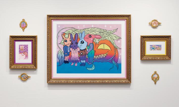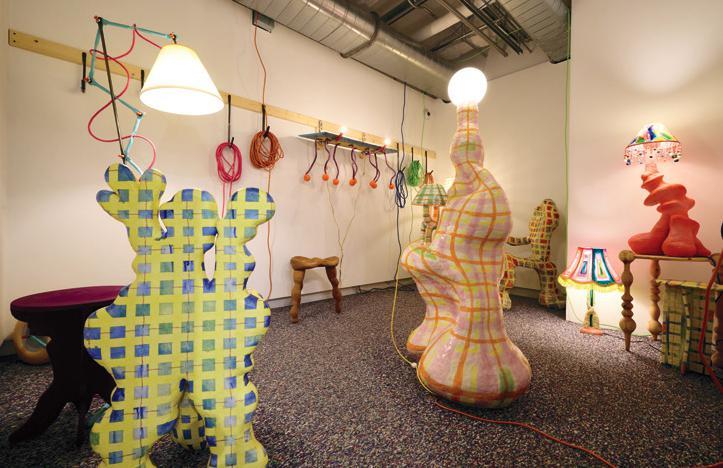 Left to right: Puget; Jimmy; Heart Chair; Commode Man; Cabriole Smurf Leg Table; Smiley Table; Little Lad; Pink Flamingo Wizard; Chicken Eggplant; Big Papa; Turned Pine Table Glazed ceramic, plasma cut steel, plasma cut acrylic, acrylic paint, lampshades