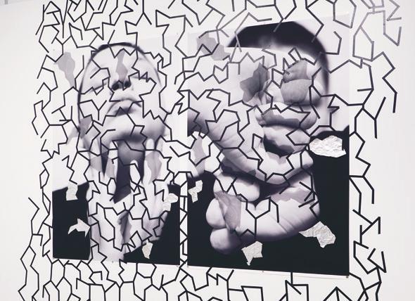 Inkjet print, paper, tape, foil, and plastic mesh