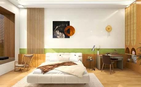 Interior kamar apartemen ramah lansia ini mengadaptasi gaya Interior Japandi Japandi merupakan kombinasi gaya Interior Jepang dan Scandinavian Masyarakat jepang yang berumur panjang, serta konsep (Wabi Sabi) seni dengan memandang dunia yang berpusat pada kesederhanaan, kekurangan dan penerimaan ketidaksempurnaan serta (Scandinavian) keseimbangan antara dunia kerja dan keseharian, kurangnya kegiatan harapa apartem
