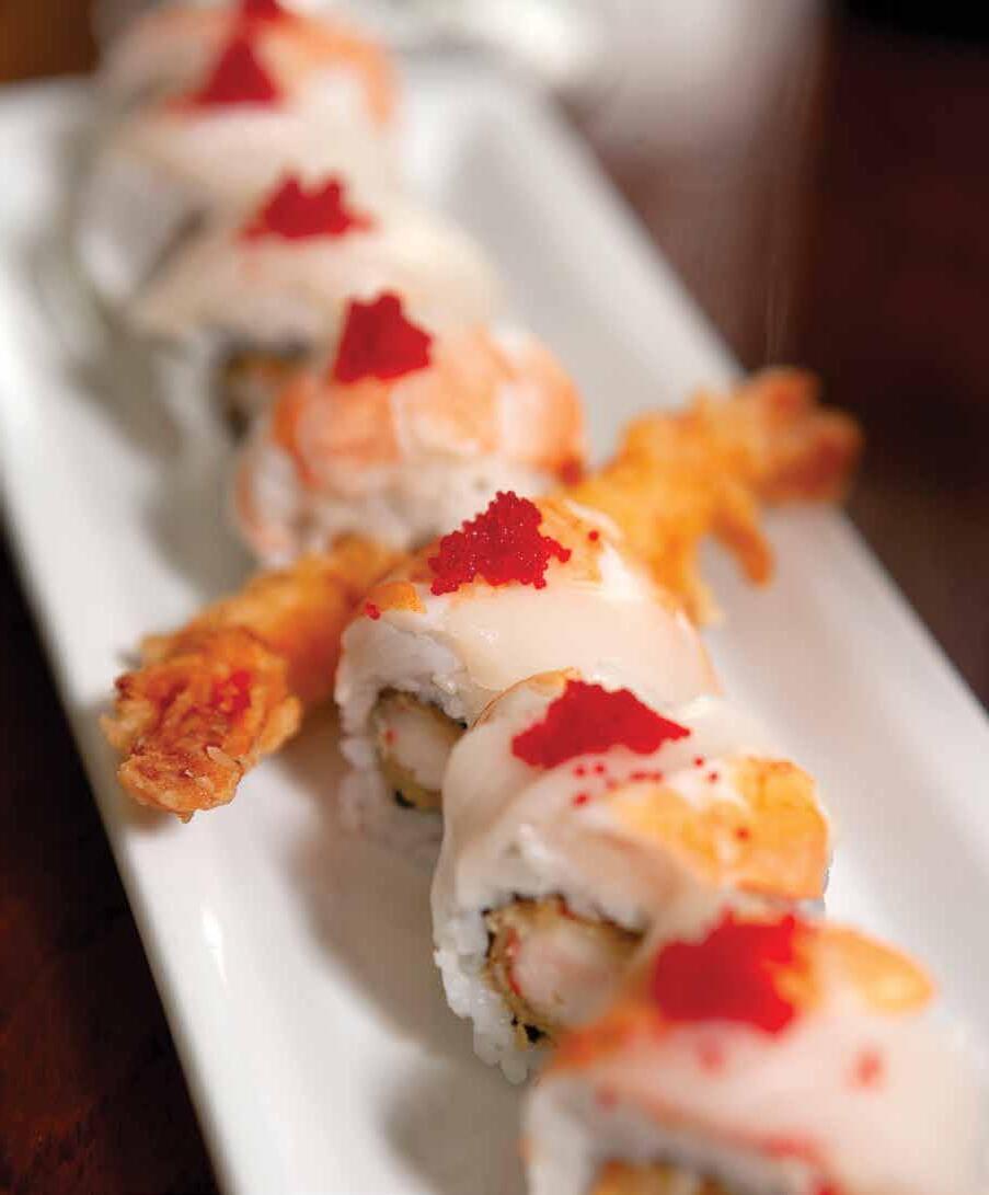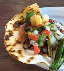 The table pairing for the bone marrow tartare is the fresh torched sablefish. The smokiness from the ever-so-slight char stands up to the bold flavors in the beef. Think of sablefish as the salmon of whitefish—luxuriously fatty and oh-sodelicious. The four generous slices at Felt Eatery and Bar were expertly kissed by a blowtorch, a common technique at sushi bars. What was uncommon at Felt Eatery and Bar was the yuzu ponzu, mango miso dotting the plate, and the cucumber wasabi sauce. I generally avoid wasabi when eating sablefish—it can overpower the delicate sweetness of the fish itself. The perfect foil to the heat of the wasabi is the blended-in cucumber to make a sauce rather than an aggressive dab of green.