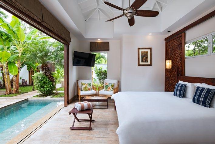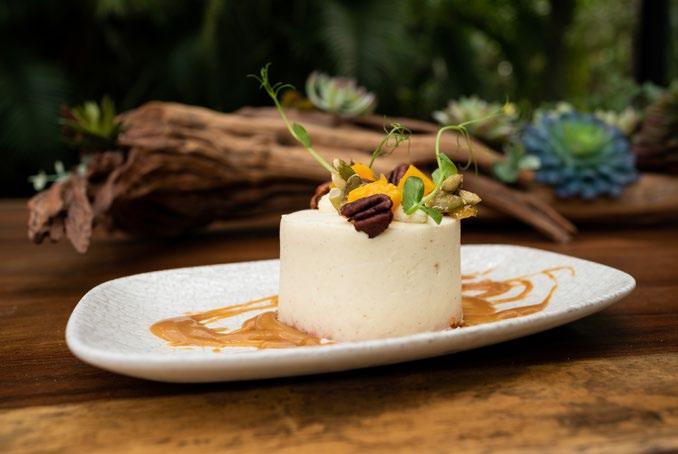 Plush indiviudal cabanas scatter the shore of the bay. The water is warm, almost hot, with the tranquility of a lake. It’s saltier than the Pacific, so I float with ease, drifting gently into a meditative lull. We order cocktails and lounge under the Carribean sun rays, hands intertwined. I find myself relaxed in a way I hadn’t been in months; there’s something here. We clean up and dress up, for our first meal at Sea Salt. Seated inside, in the wine tasting room, we indulge in a four-course wine-paired dinner. Coconut shrimp with pina colada sauce starts us off, and it’s like a dessert—sweet, crispy. Next, a traditional Belizean Serre with snapper—a dish that originated from the Garifuna culture—made with creamy coconut and vegetables. In-between courses our attentive server checks in and the sommelier refreshes our glasses, as we smile earto-ear. When the service and setting are aligned, you can truly sit back and enjoy your vacation, because you know you’re in good hands. Though we’re nearly satiated from the hearty meal, the beef tenderloin entree, set upon a sweet potato mash is the kind of dish you make room for. Like a filet, the meat melts as though it’s butter. We split the Alaia’s signature panna cotta dessert,