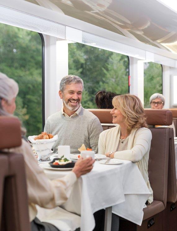 Immerse yourself in 5-star comfort and luxury with GoldLeaf Service. Relax in spacious reclining seats, enjoy complimentary drinks, and savour gourmet breakfast and lunch. Delight in culinary creations crafted by executive chefs all while marvelling at the breathtaking vistas of the majestic Rockies unfolding outside your panoramic window.